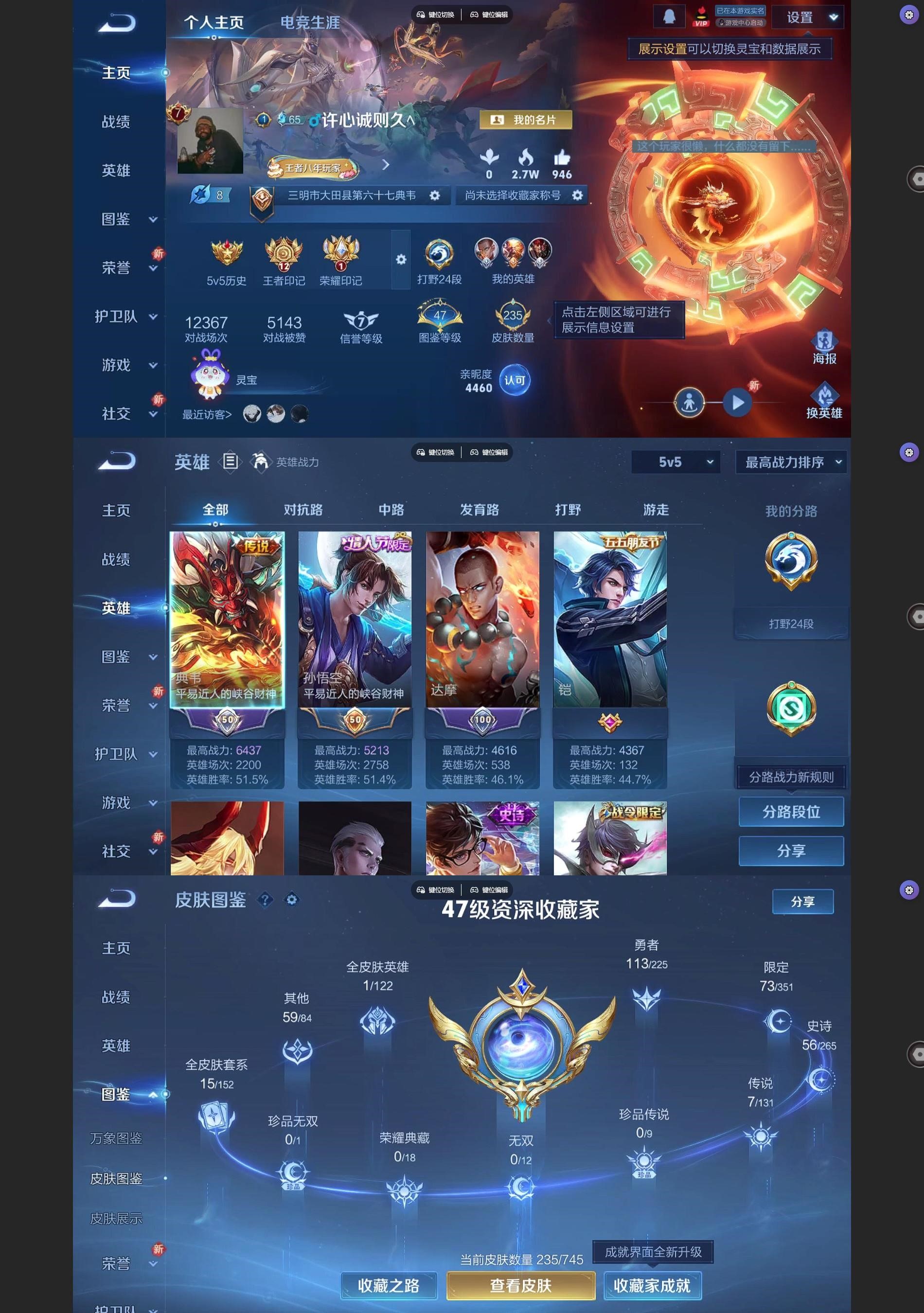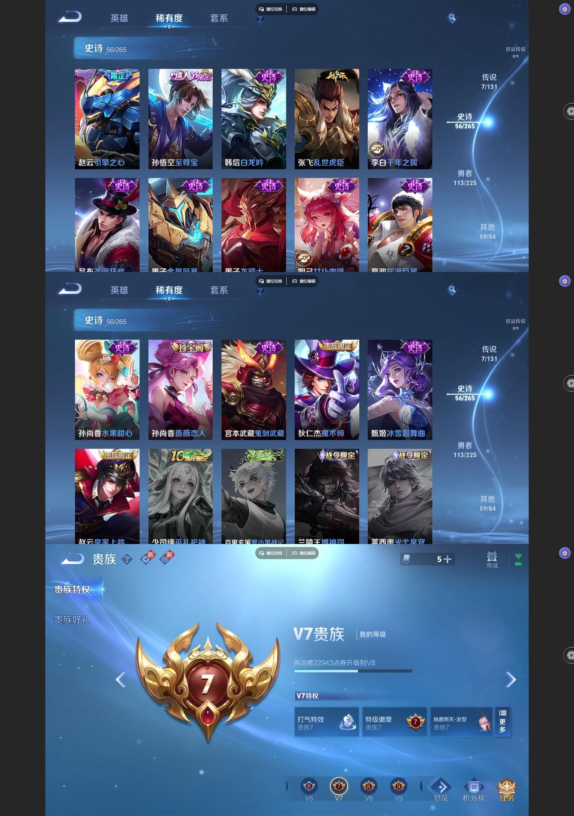 王者荣耀【安卓QQ】[王者荣耀]V77传说56史诗235皮肤至尊星耀I