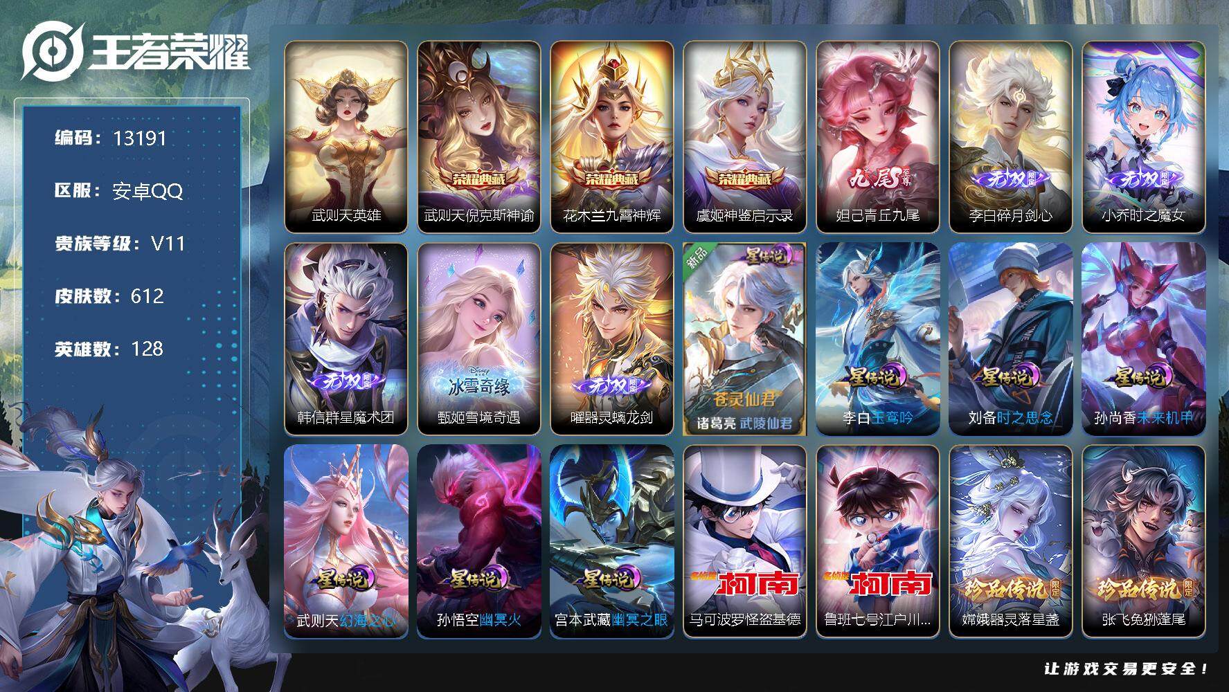 王者荣耀【安卓QQ】可换绑【满生肖限定,无双V10有传承位,110传说多限定精品捡漏】 135按键