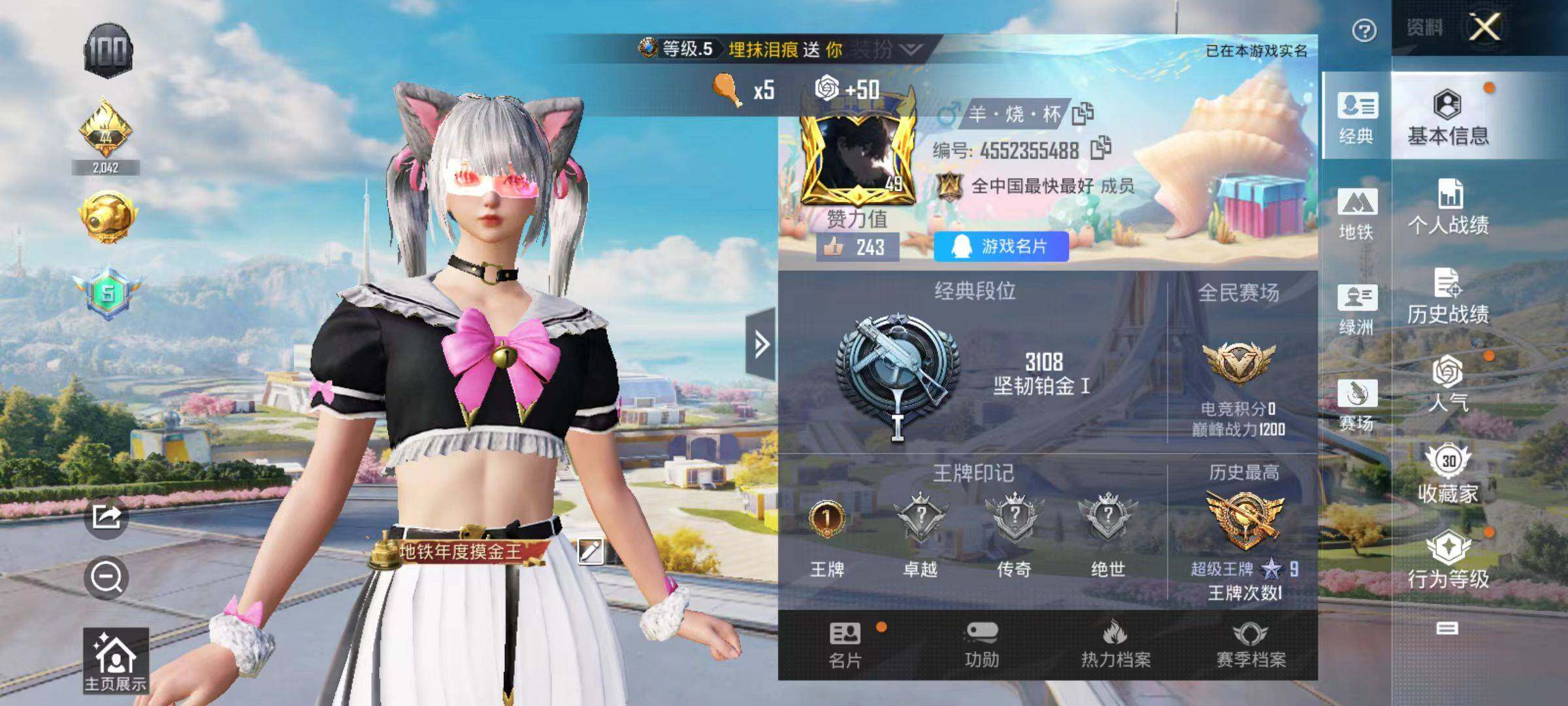 和平精英【安卓QQ】安卓 手Q-2粉装-1特效枪-0载具-1粉色飞行器-19304热力值-1王牌印