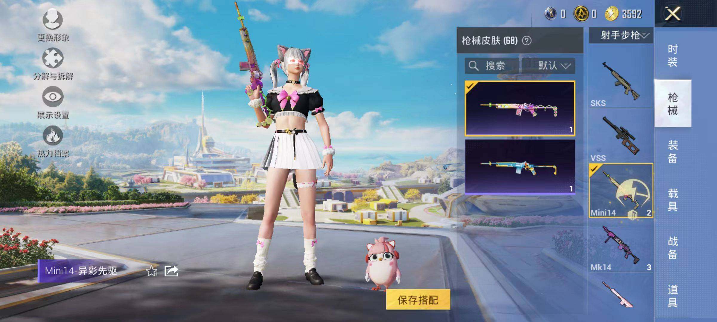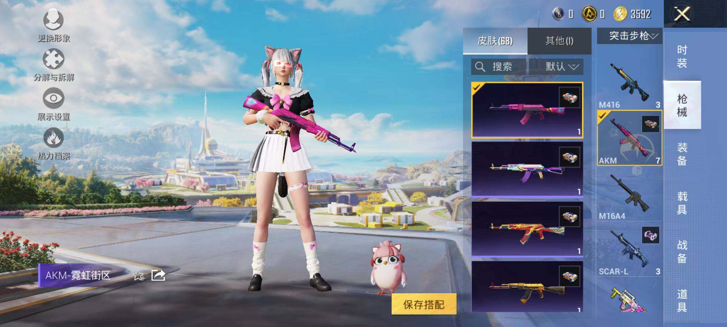 安卓 手Q-2粉装-1特效枪-0载具-1粉色飞行器-19304热力值-1王牌印记-50套装-65枪皮