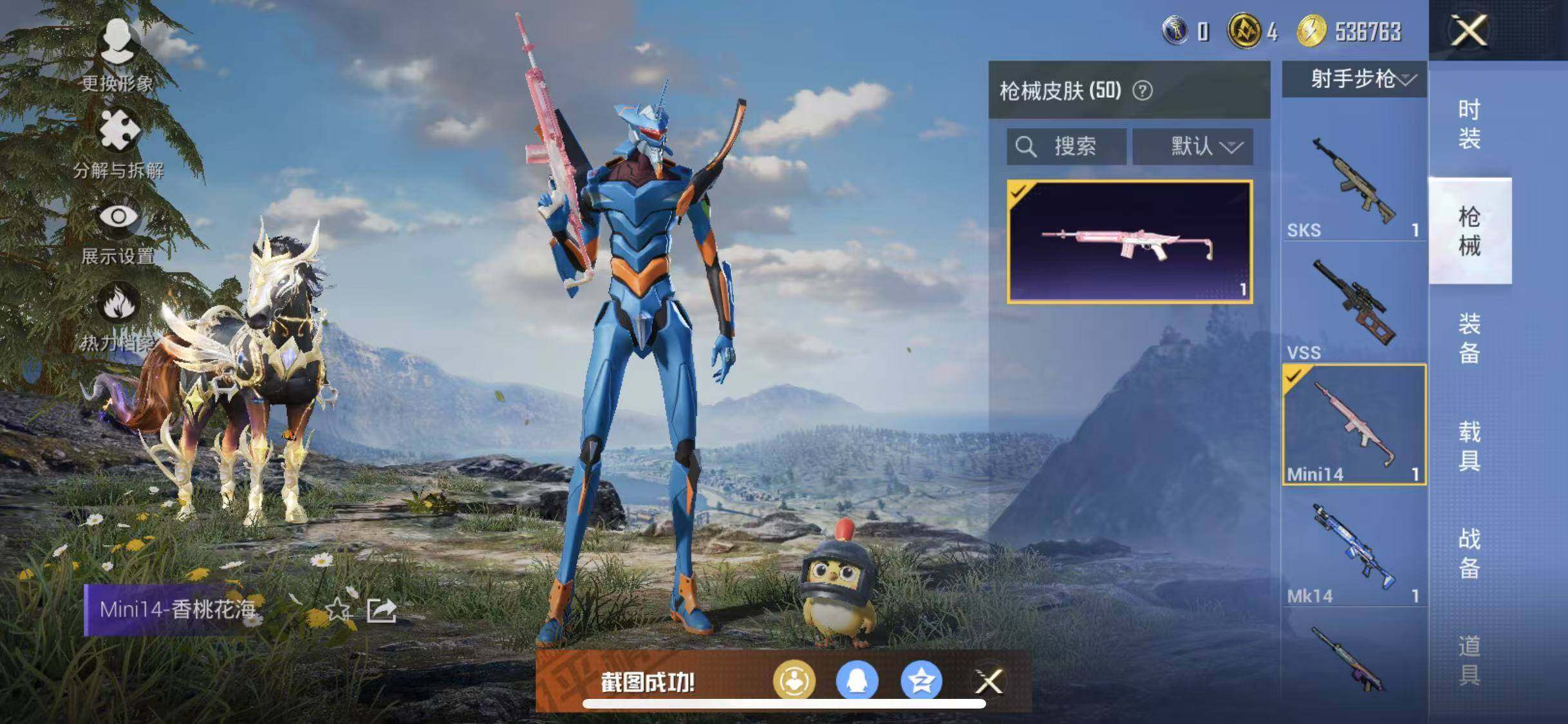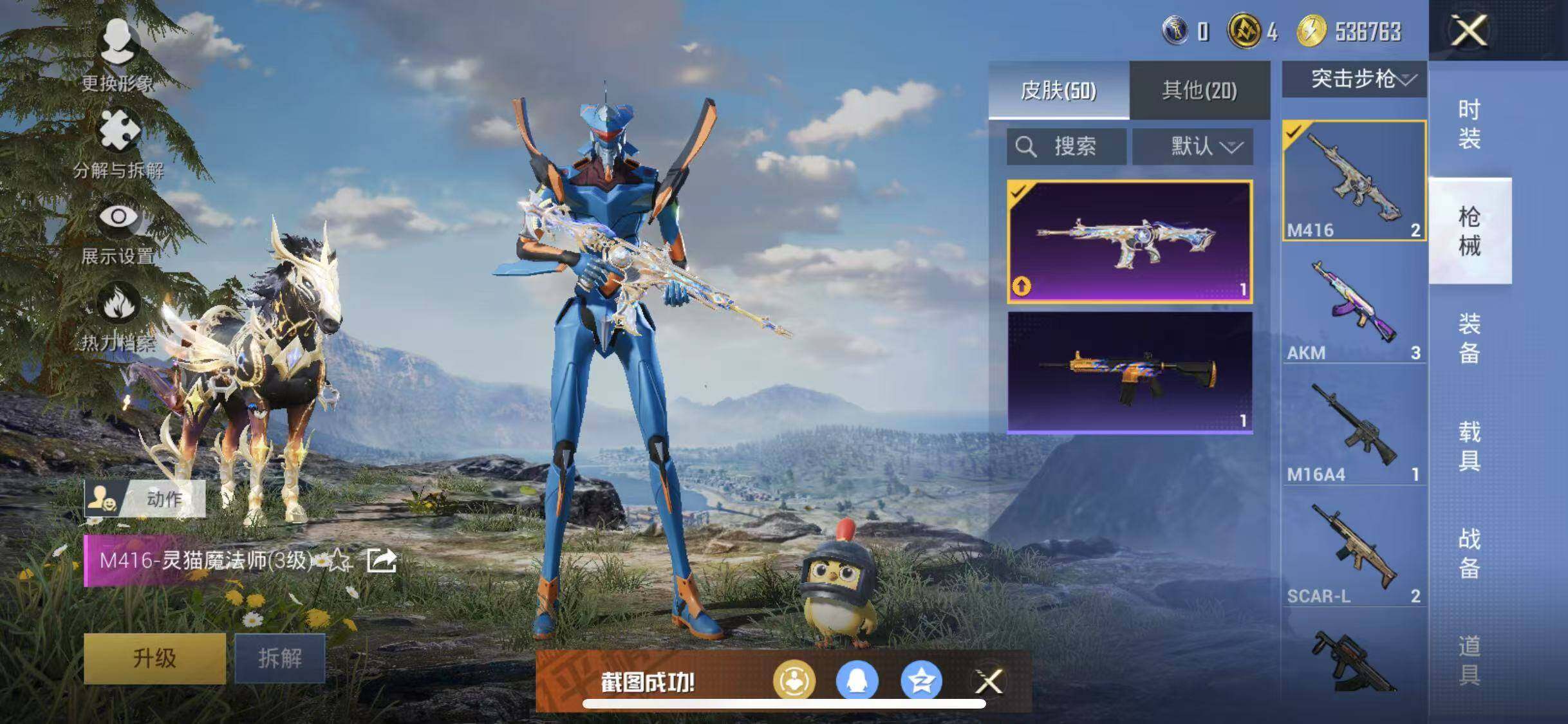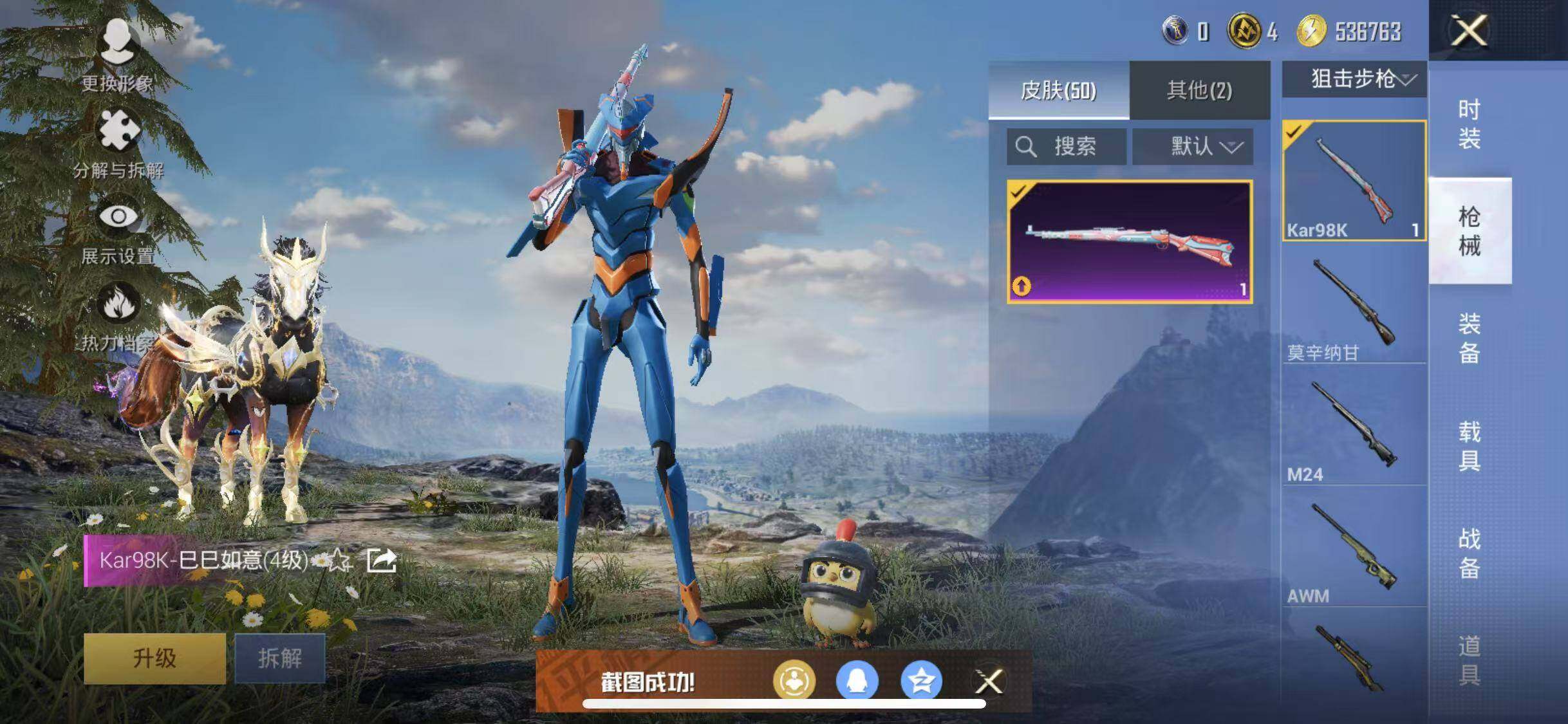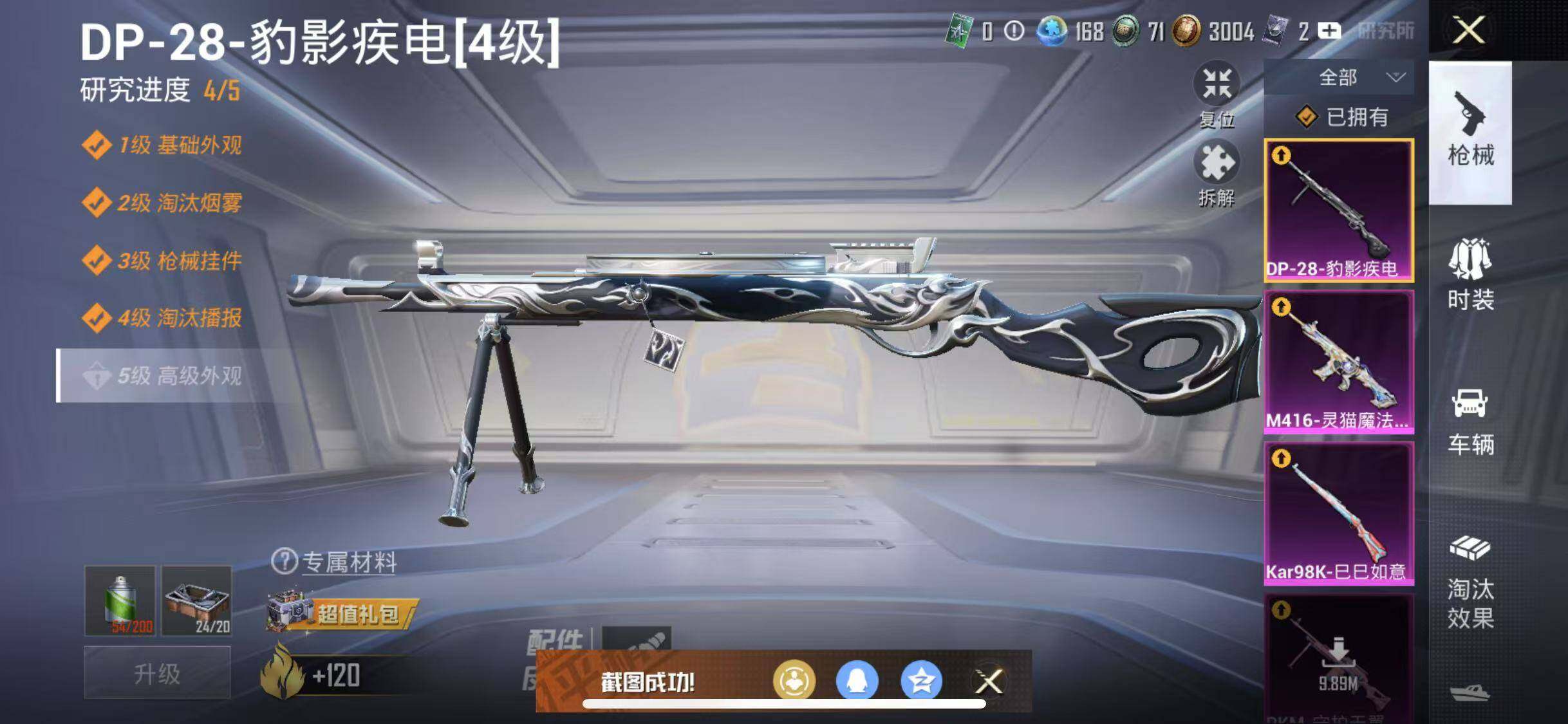 【粉色枪皮等级】:M416-灵猫魔法师(三级),Kar98K-巳巳如意(四级),DP-28-豹影疾电(四级),PKM-守护天翼(四级)