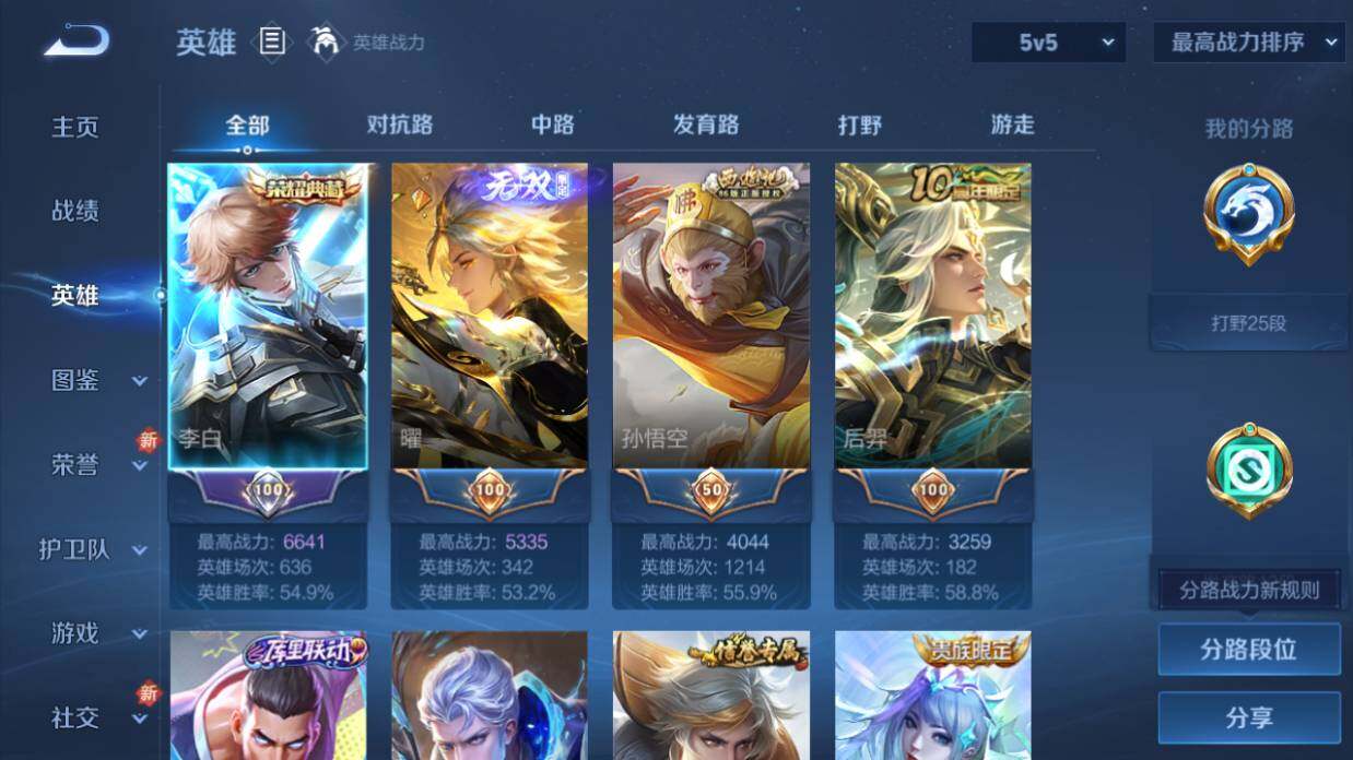 营地账号:325574261/打野25段 6按键 安卓Q-V8-127英雄-353皮肤-3典藏-1无双-1珍品传说-3星元-20传说-105史诗