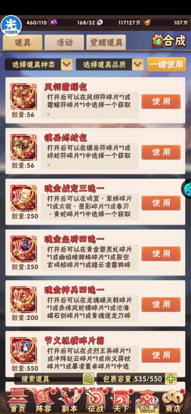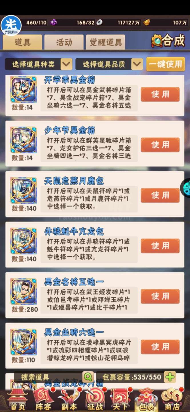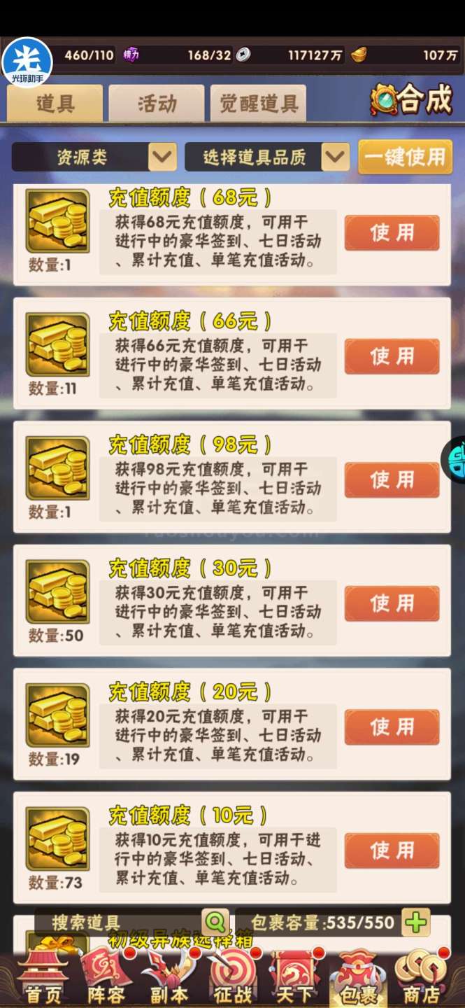 现有元宝105万左右。签到币16万+,每天可换大量基础资源;魂金装备4件套,⌛魂金+昊金兵符,魂金全跟未漏;双丹7万+,刷到150轻松突破!水晶8000+,换翅膀很舒服!⏰魂金:武将、战旗、名将、军师、宠物 、马、神兵、美人全可合成,⏰果盘游戏APP下载少年三国志(五个字的版本)