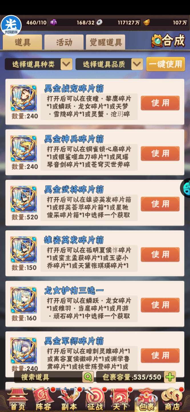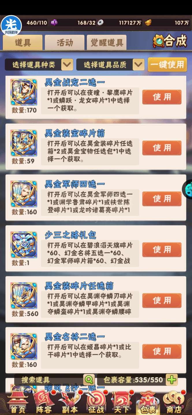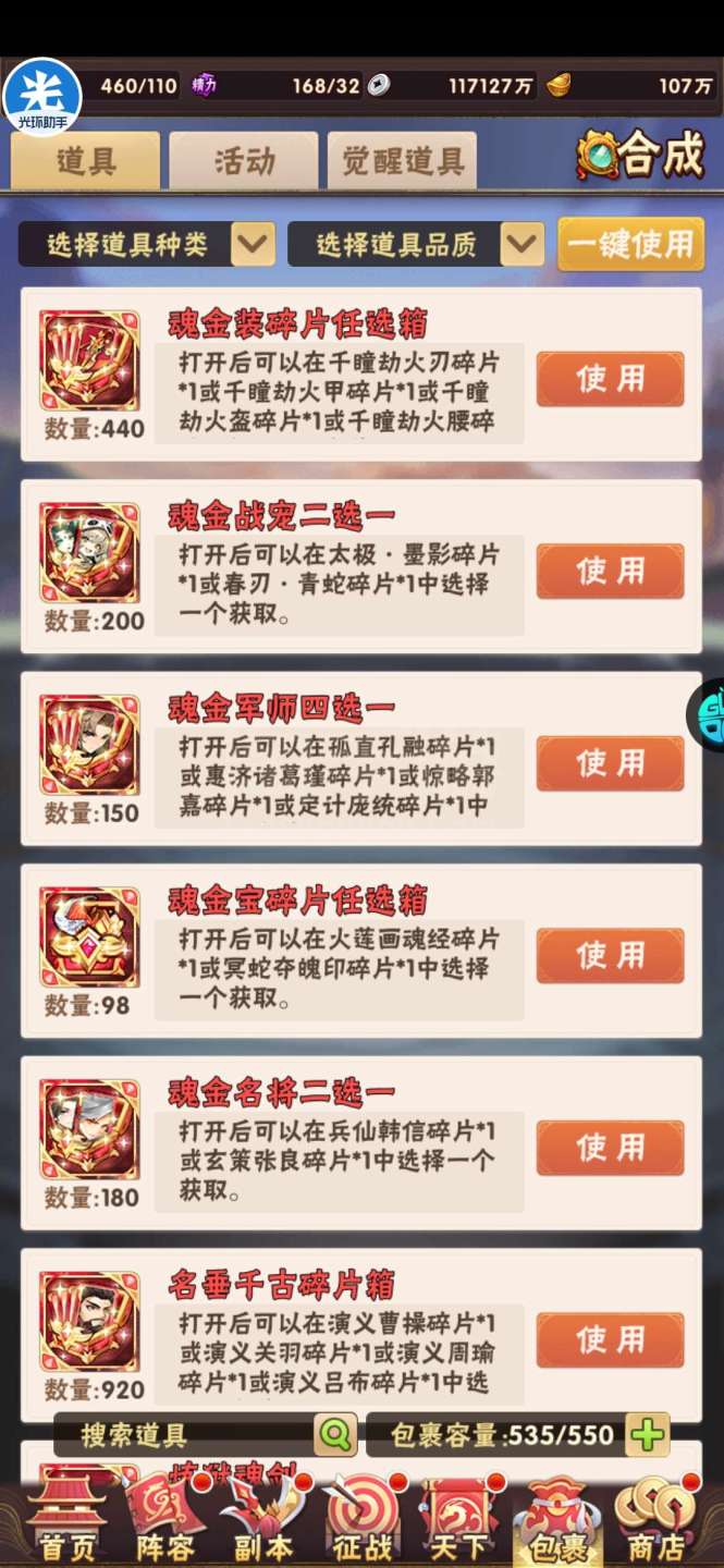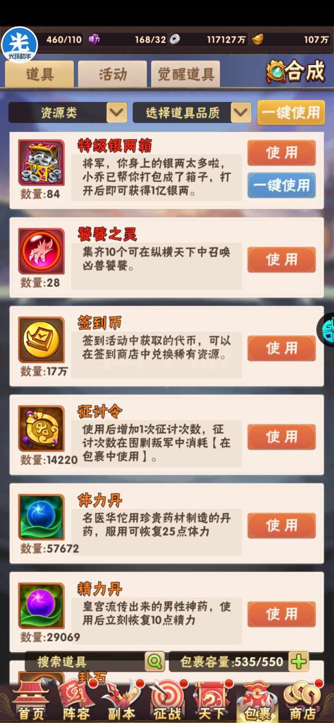 现有元宝105万左右。签到币16万+,每天可换大量基础资源;魂金装备4件套,⌛魂金+昊金兵符,魂金全跟未漏;双丹7万+,刷到150轻松突破!水晶8000+,换翅膀很舒服!⏰魂金:武将、战旗、名将、军师、宠物 、马、神兵、美人全可合成,⏰果盘游戏APP下载少年三国志(五个字的版本)