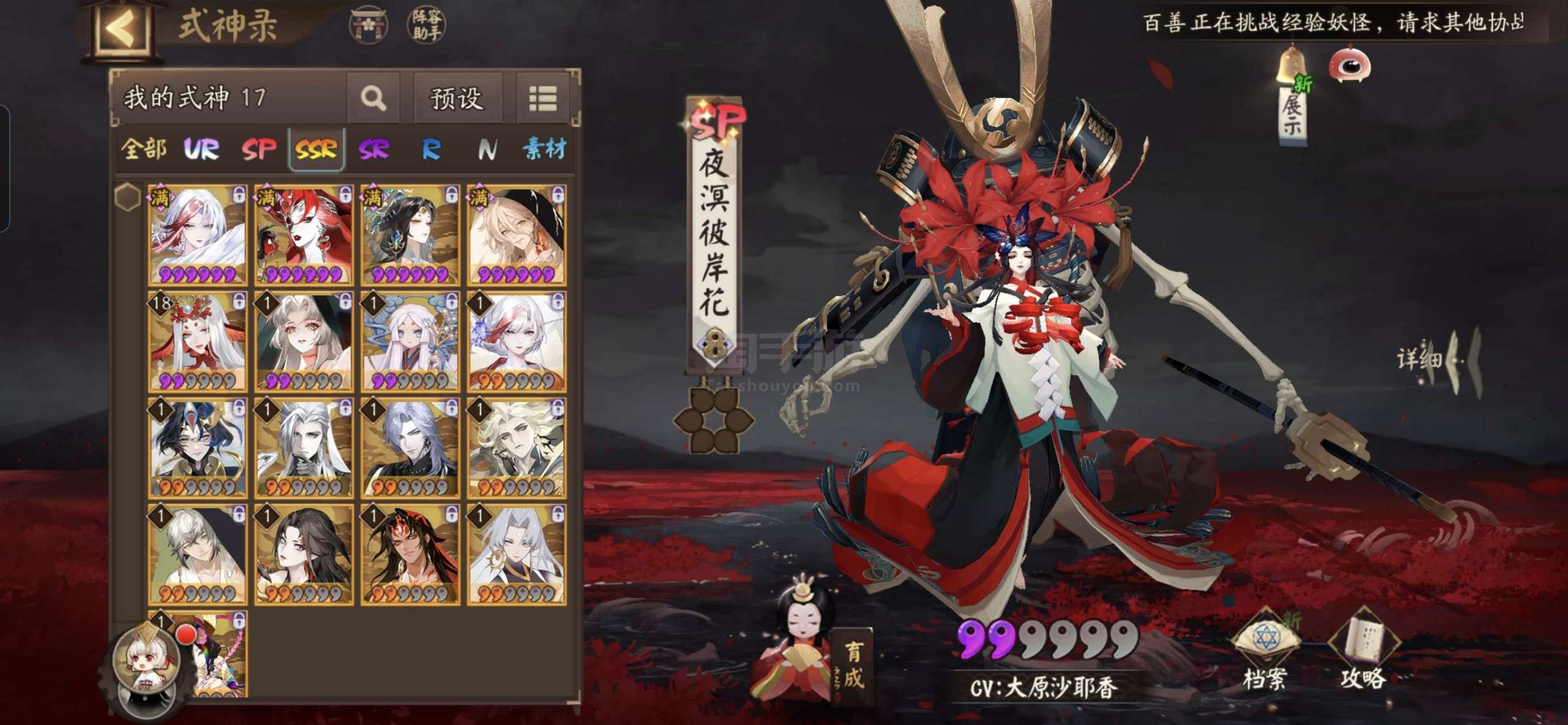 阴阳师【安卓官方】百崽同行,因幡天照大缘雪御前瑶音鬼王须佐不见岳SP不见岳等等,加自选加庭院多胚子