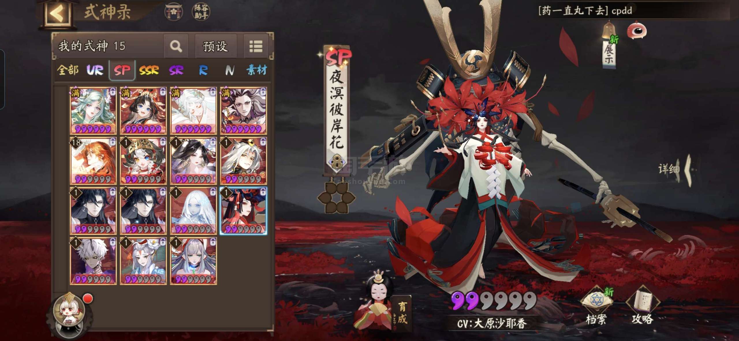 因幡天照大缘雪御前瑶音鬼王须佐不见岳SP不见岳等等,T0基本上都有。