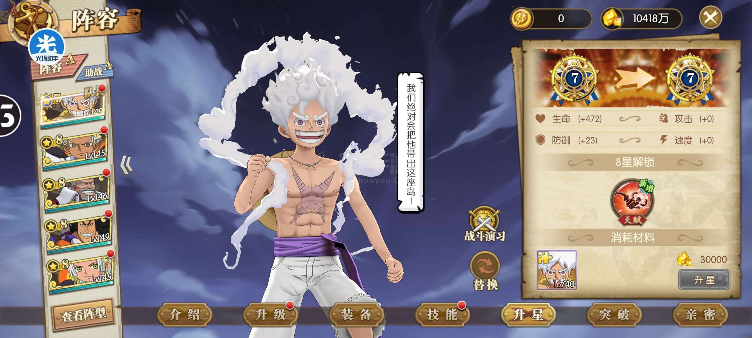 航海王:燃烧意志【安卓360】航海王燃烧意志360版本准八星UR尼卡路飞八星s小鹰眼八星s小女帝三觉御田卡普多八星开局传记剧情没打