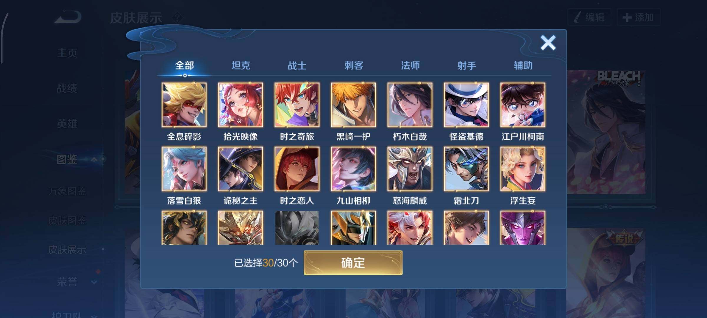 王者荣耀【安卓QQ】365皮2典藏5珍传24传说全息碎影拾光映像时之奇旅黑崎一护朽木白哉怪盗基德江