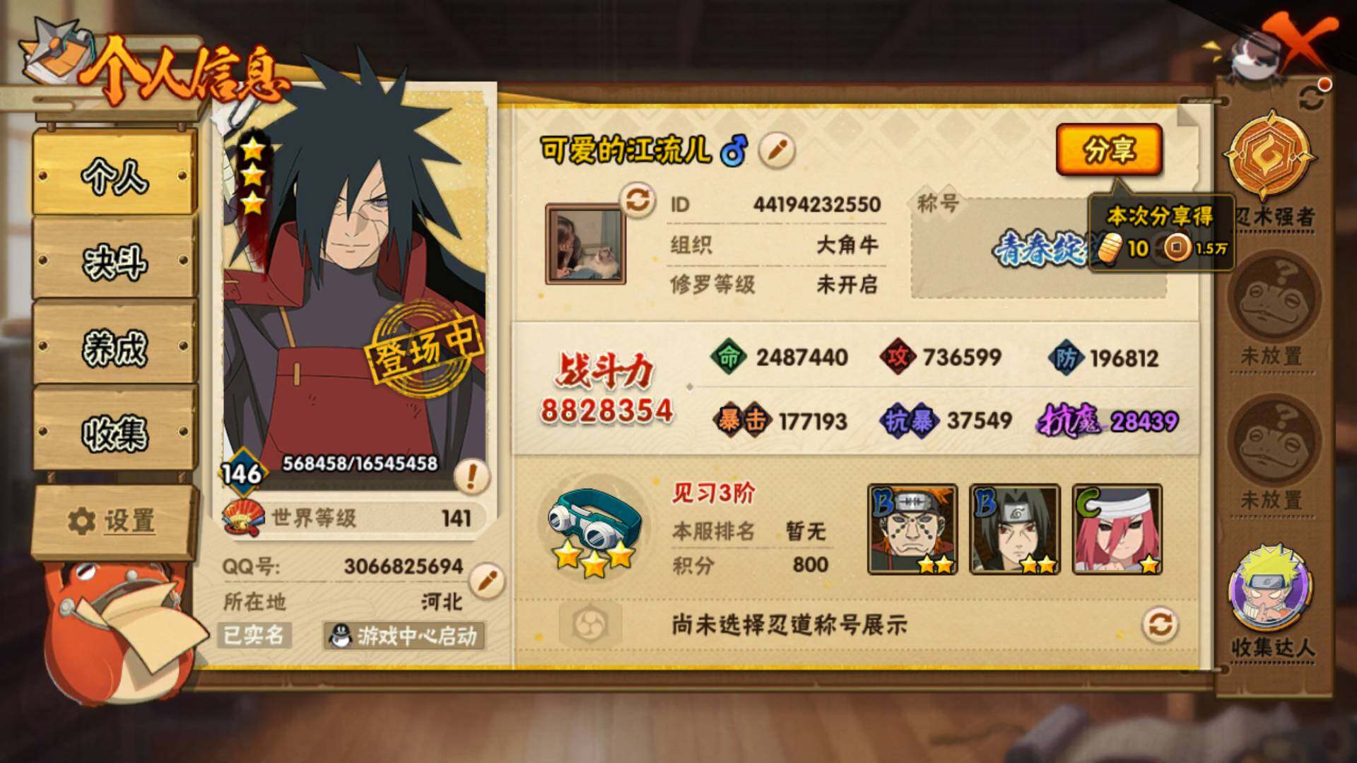 v6 13S 32A 880万战力 1万+金币 须佐卡卡西79片 zp3224