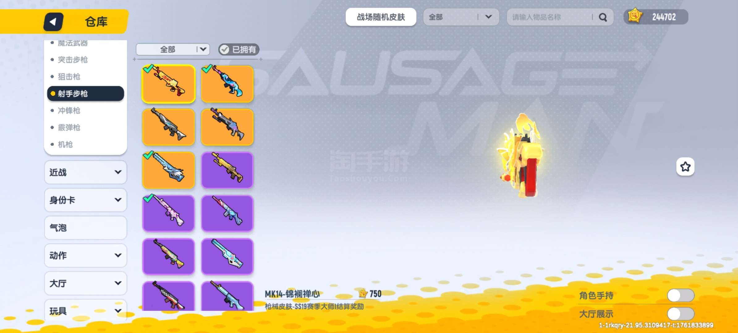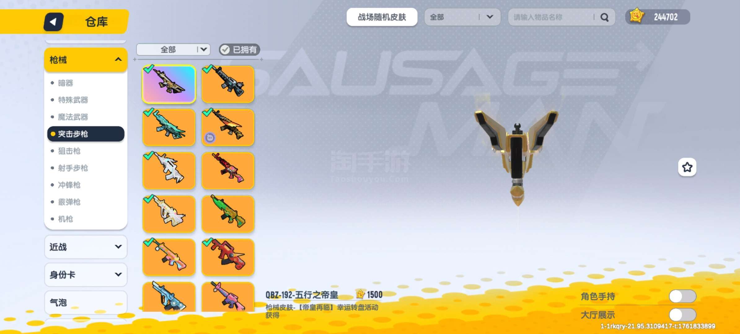 香肠派对s1老玩家,最高段位传说1896名(24颗星),一百六十万的伤害量,然后该有的枪皮也都有