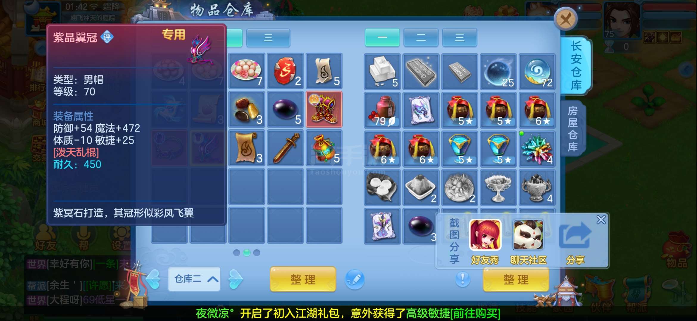 幻唐志:逍遥外传(神武4)【安卓官方】国庆大区跟等级75佛门,各种齐全,没时间玩了,细节看图。