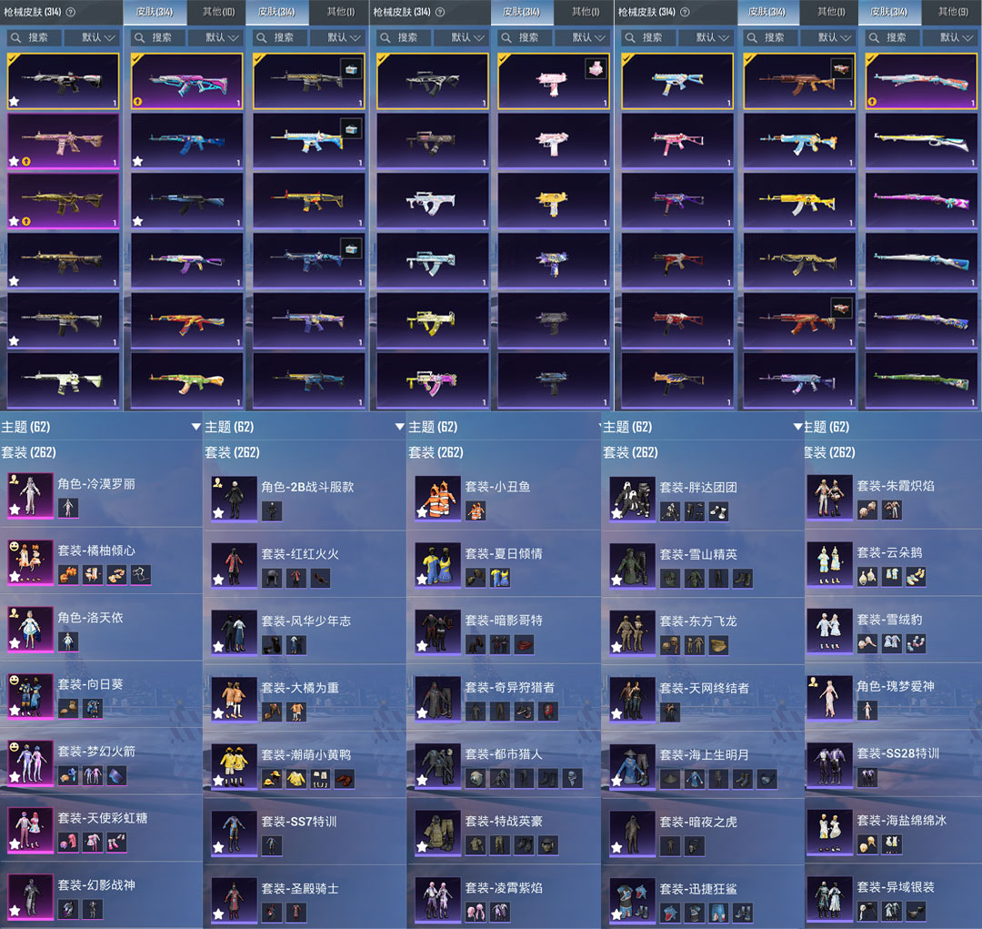 特效枪6:M416-五爪金龙/5级,M416-心之恋语/7级,AKM-梦之光华/6级,MG3-洛神天依/