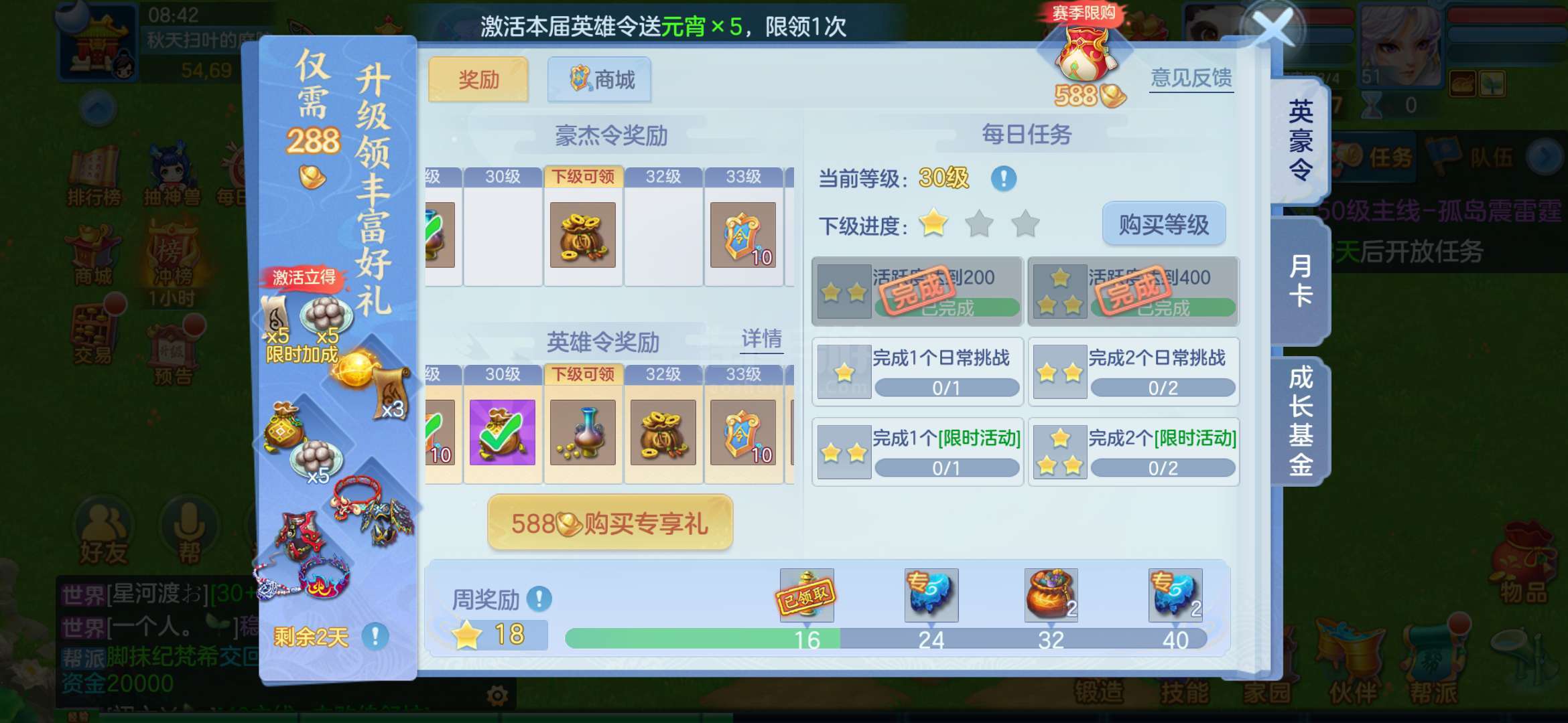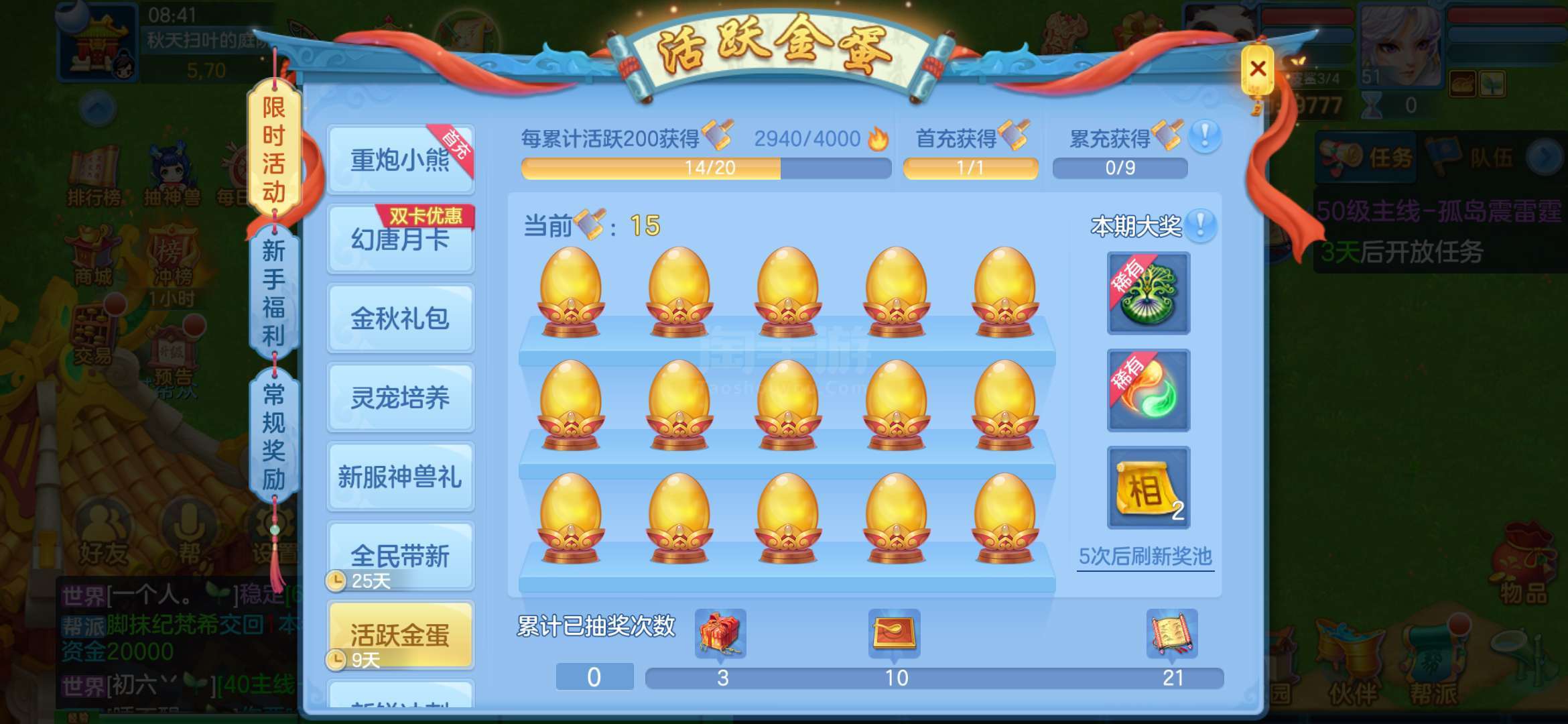 紫电青霜最新区月卡金蛋男魔王64万,600+还童丹,英豪令,隐身+连击,高级吸血+强力,宝图积分在,