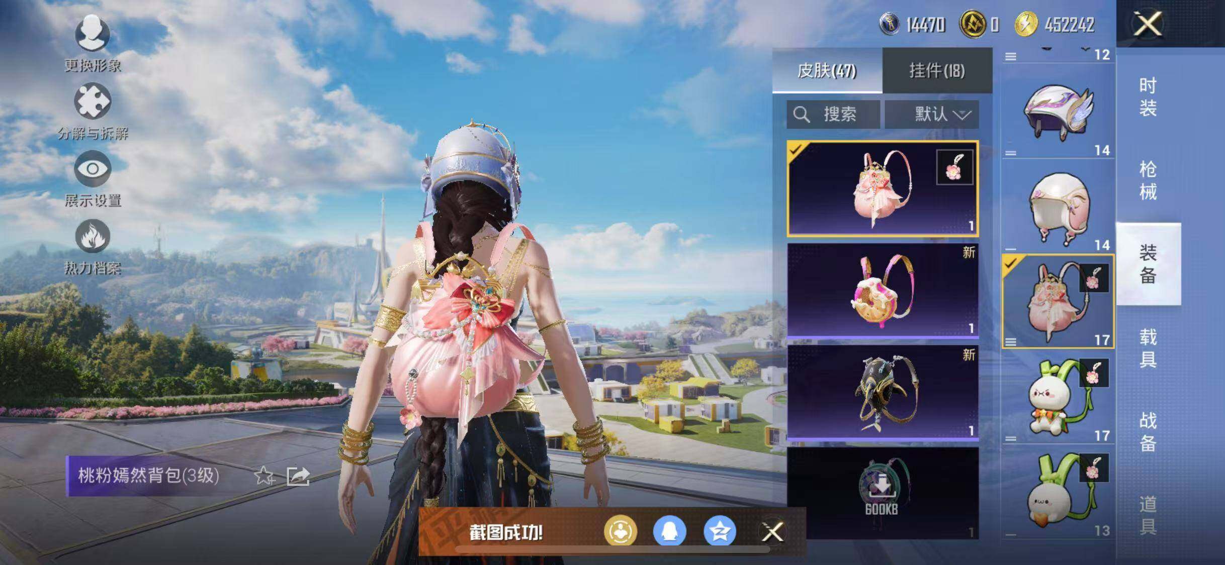 【粉色枪皮等级】:Kar98K-巳巳如意(五级),AMR-智耀战神(五级),M249-彩虹甜喵(六级),DP-28-豹影疾电(五级)