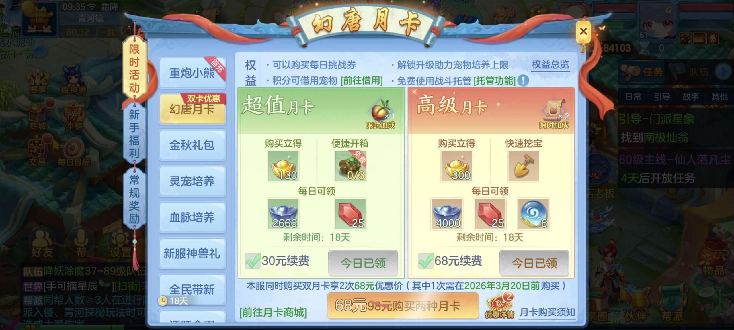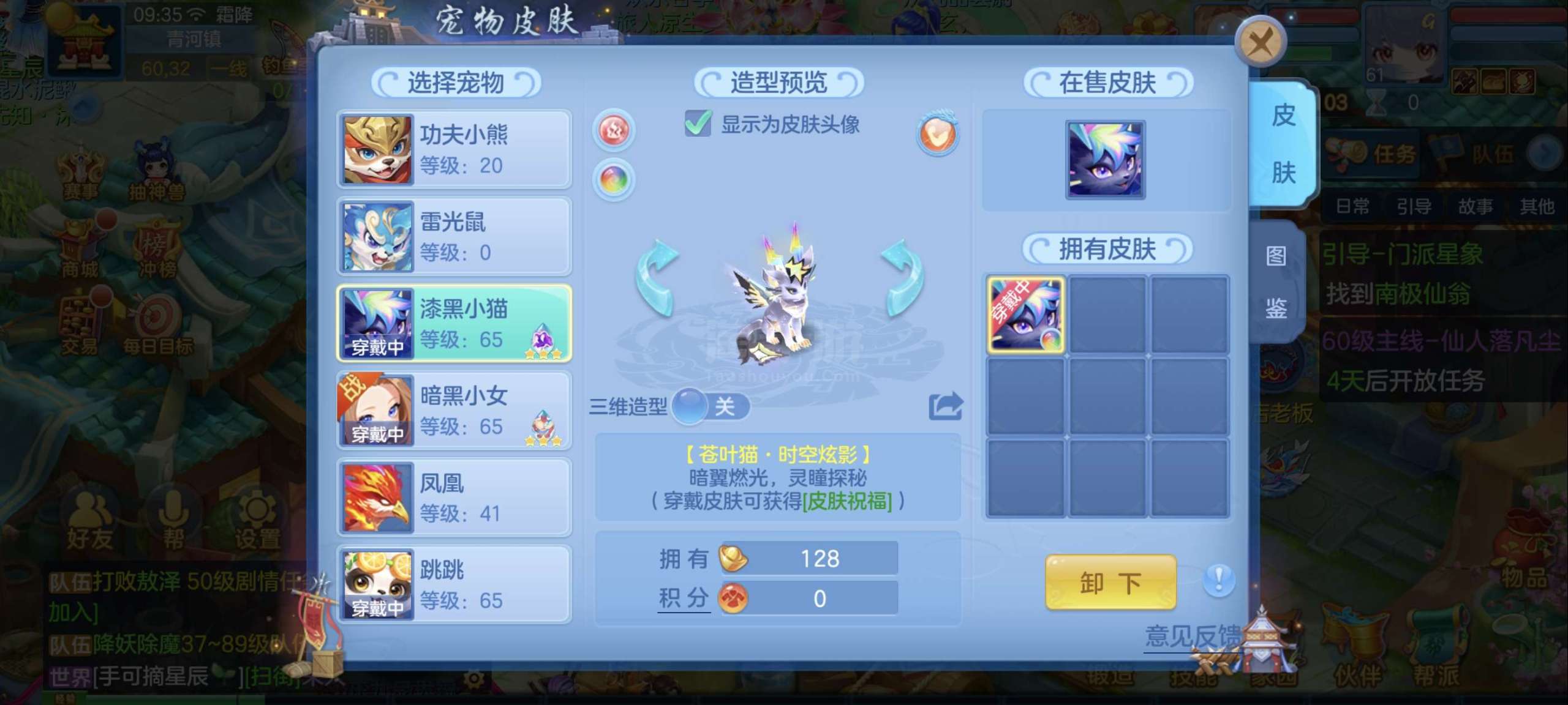 幻唐志:逍遥外传(神武4)【安卓官方】锦绣金秋,5技能红心老鼠和小熊,5技能罗刹6技能猫带皮肤,月卡时装,服务器等级55