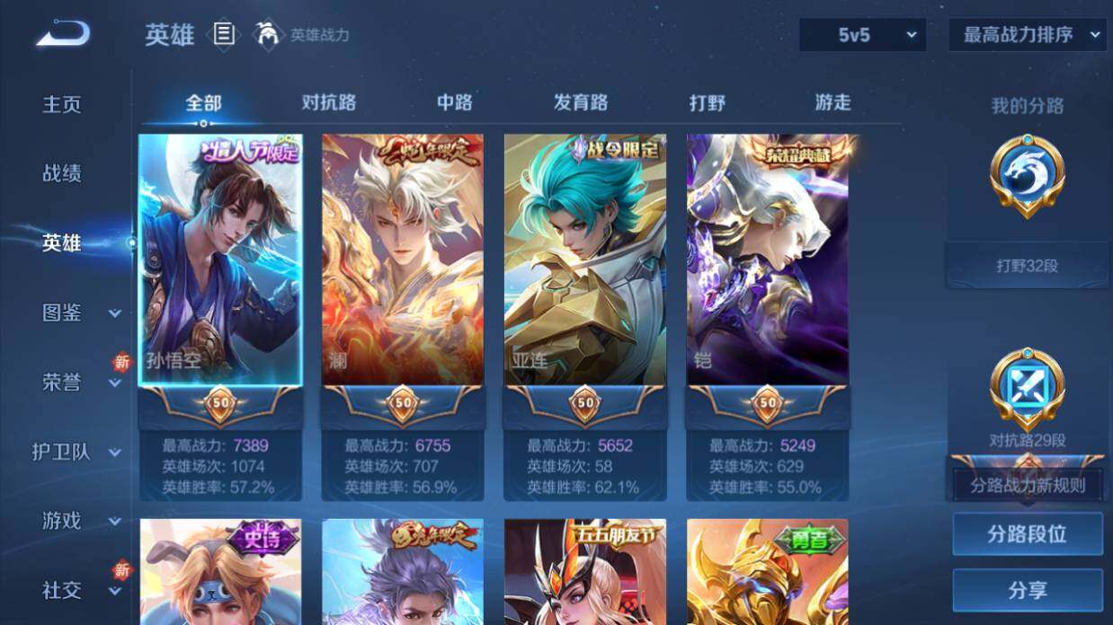 对抗路29段,打野32段,8按键 安卓Q-V7-至尊星耀I段位-126英雄-2