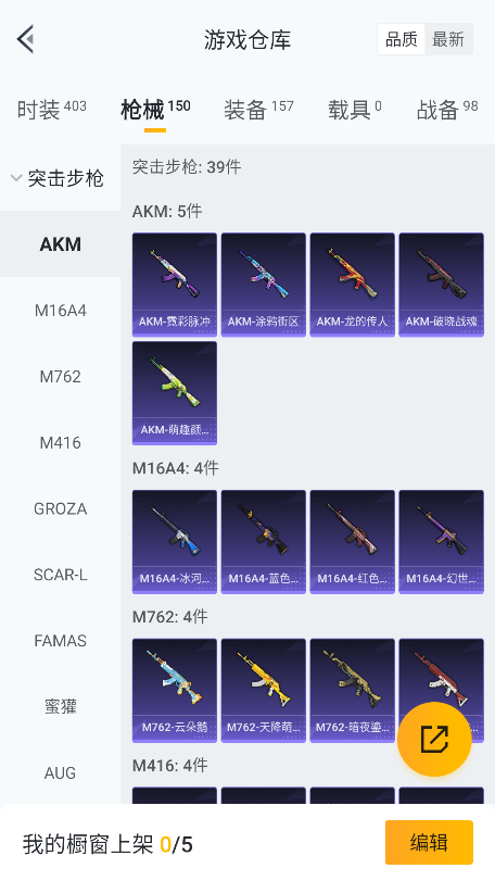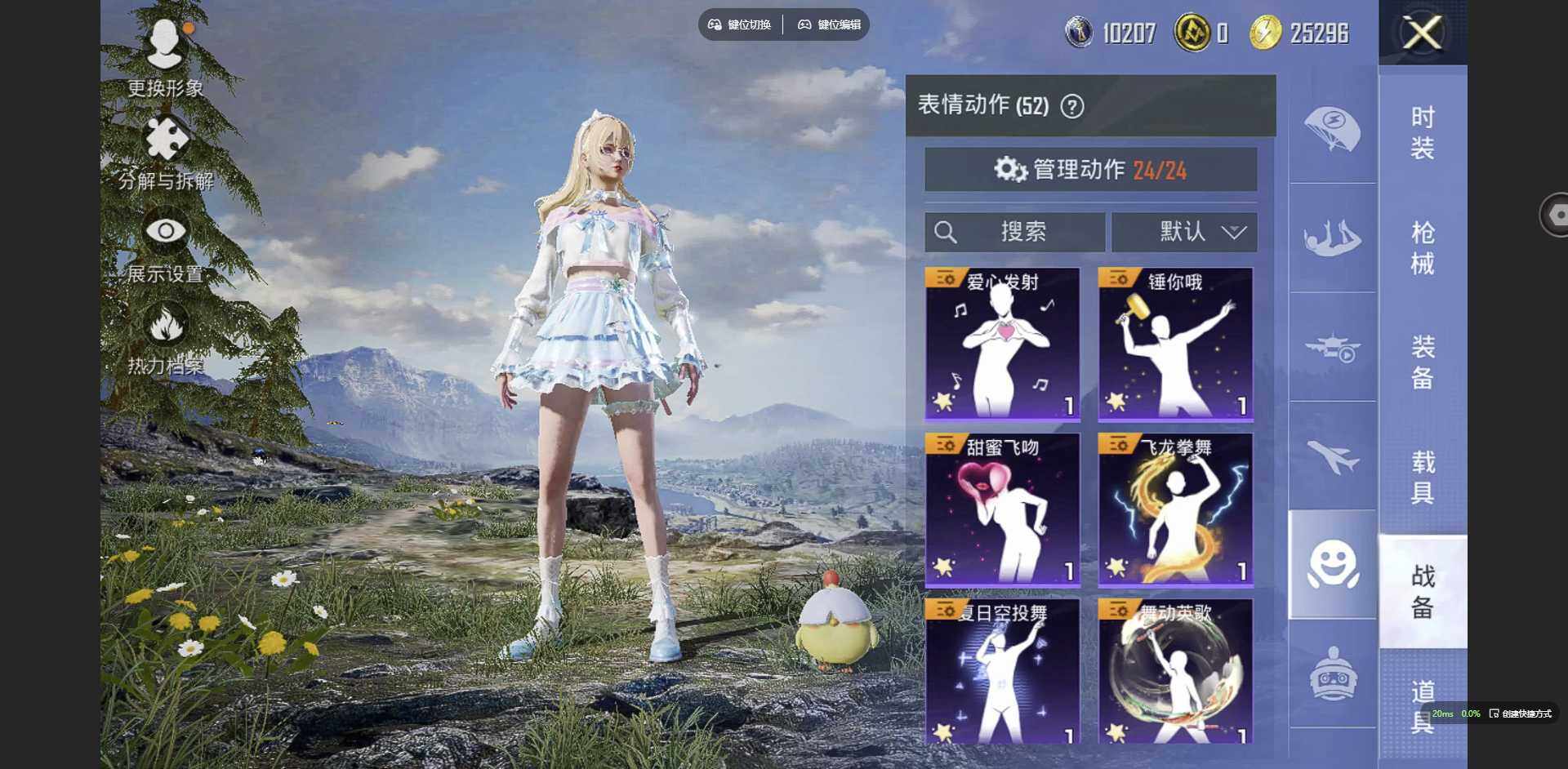 时装数: 106 枪械数: 150 战备数: 98 热门装扮: 星穹咏叹调 稀有枪皮: 七级AMR-智耀战神,五级Kar98K-巳巳如意,五级DP-28-豹影疾电
