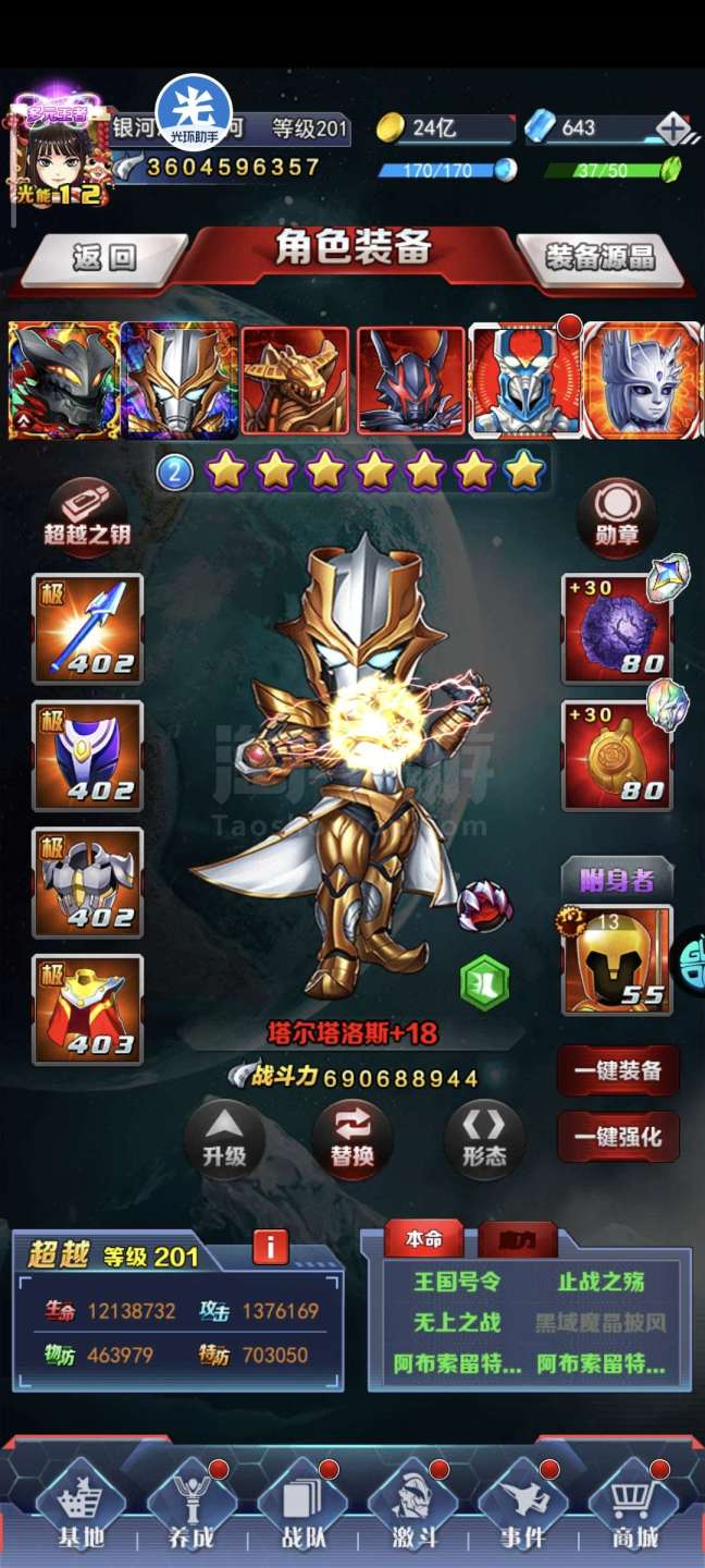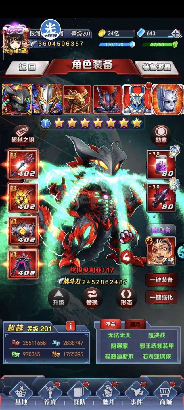 奥特曼系列OL【安卓果盘】毕业24亿手背7亿金人雷布朗多,3红变一精华,还有很多资源,竞技场19