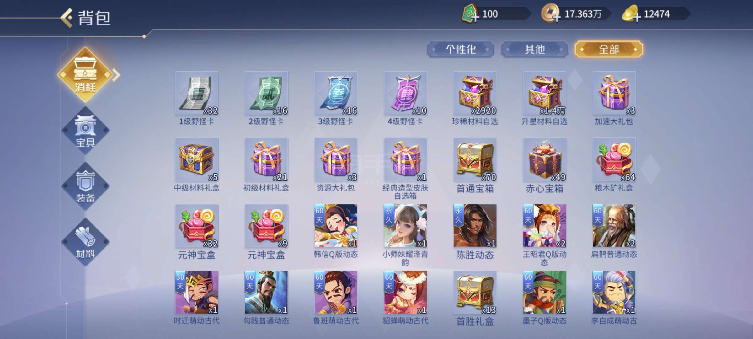 三个五星英雄,12000元宝