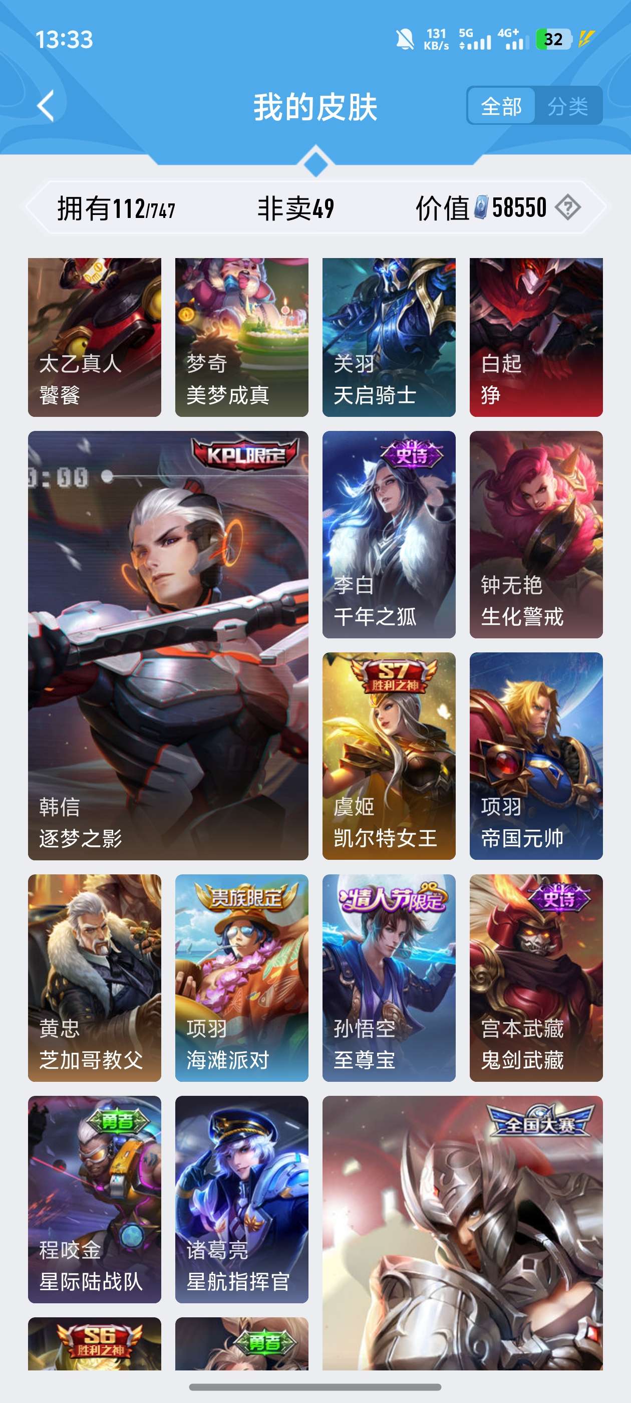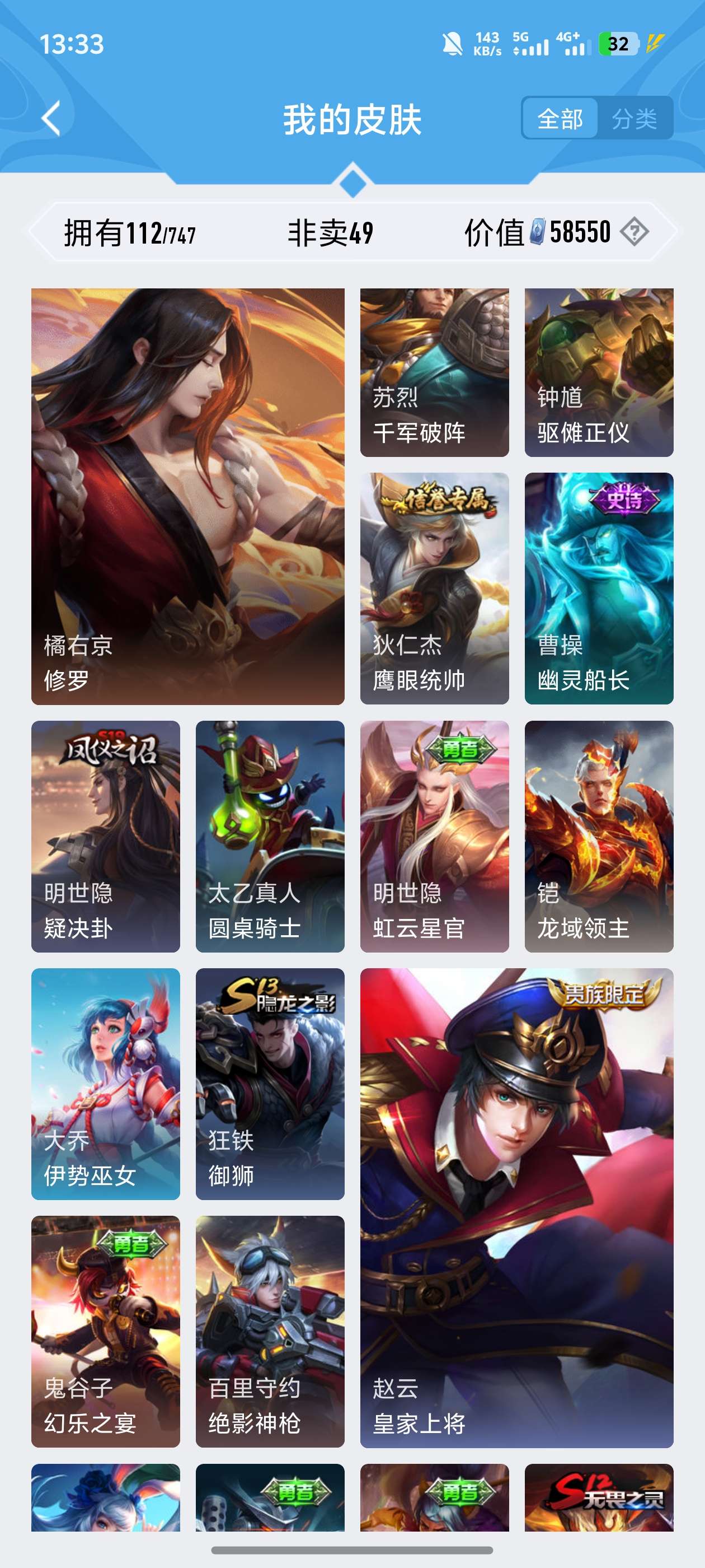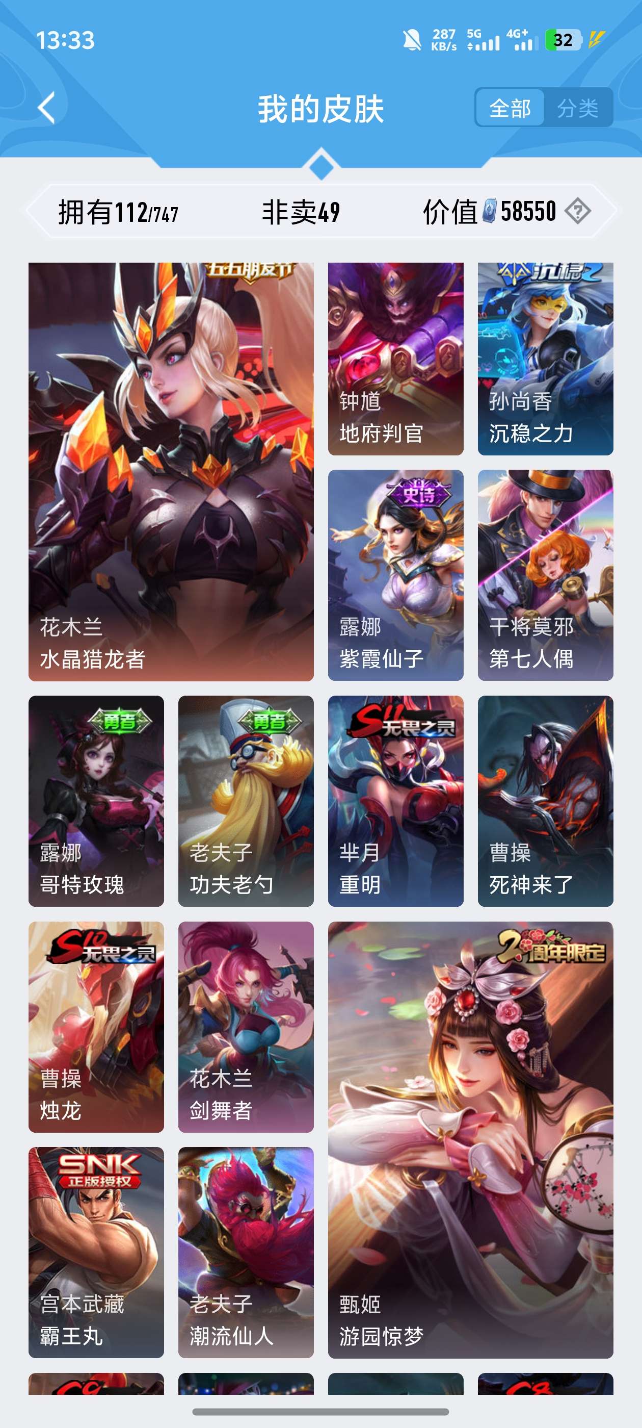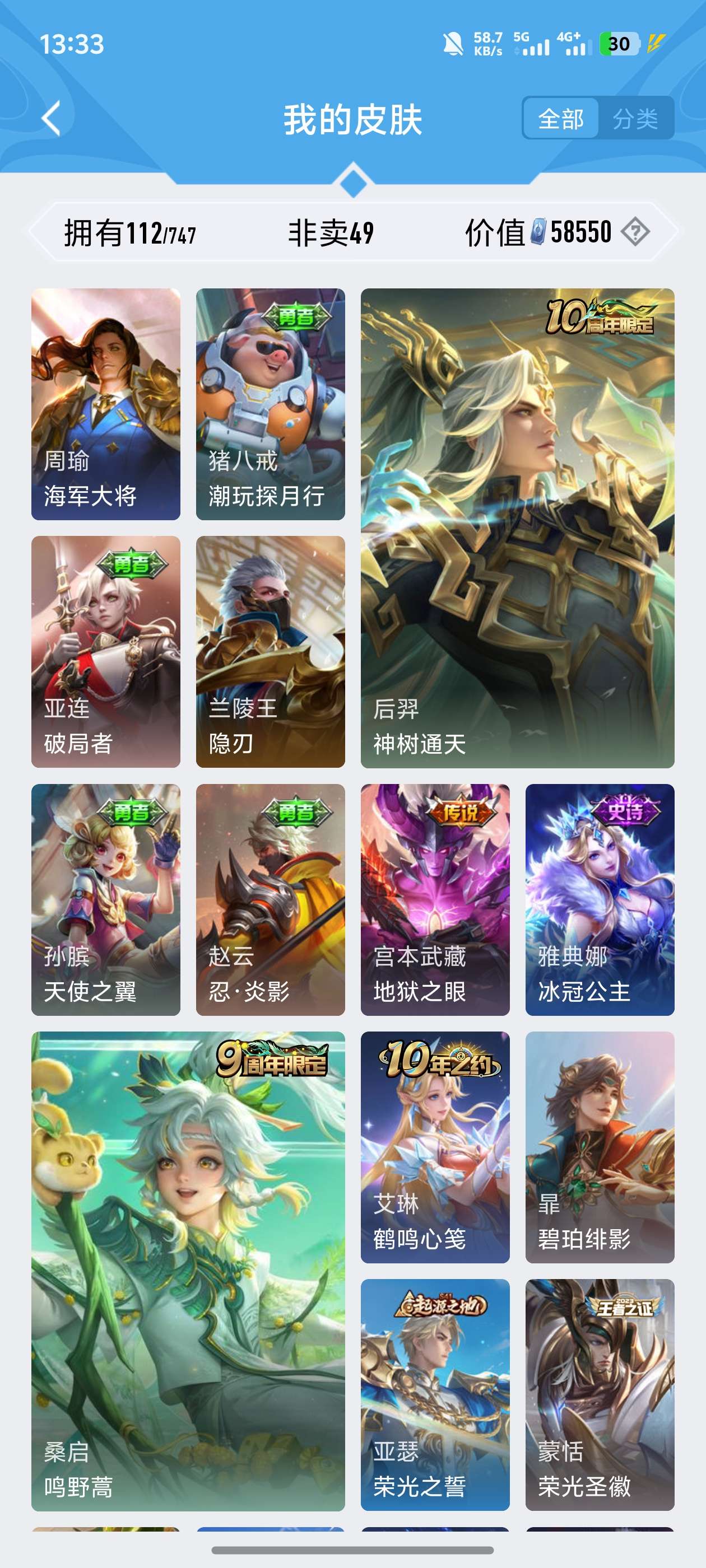 王者荣耀【安卓QQ】112皮肤便宜出,还有60多肤碎片和几百朵亲密度鲜花跟2000多紫星币