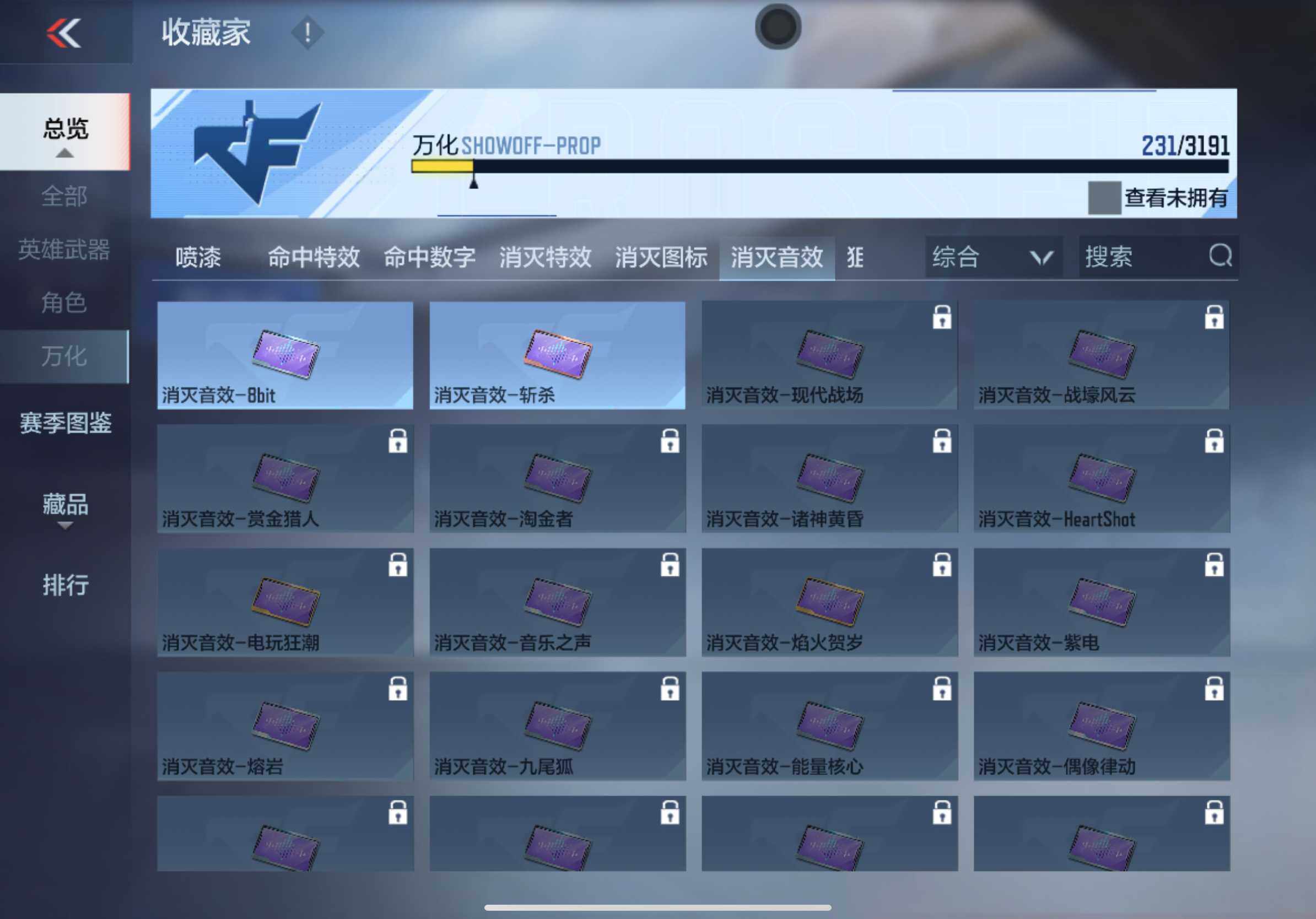 V4/7王者/157英雄/王者之影/王者之狱/王者之霆/王圣闪光烟雾/王竞闪光烟雾/M4仲达+现代战场/MK457仁德/M4威侯/M200幻神/CZS2仲康/KSG孟获/CZ75策/USP仲康/双持GLOCK本初/炽芒蝶刃/激昂霸王枪/气勇胆烈戟/角色/新生零/消灭音效/8BIT/斩杀/狙击枪线/熔岩/
