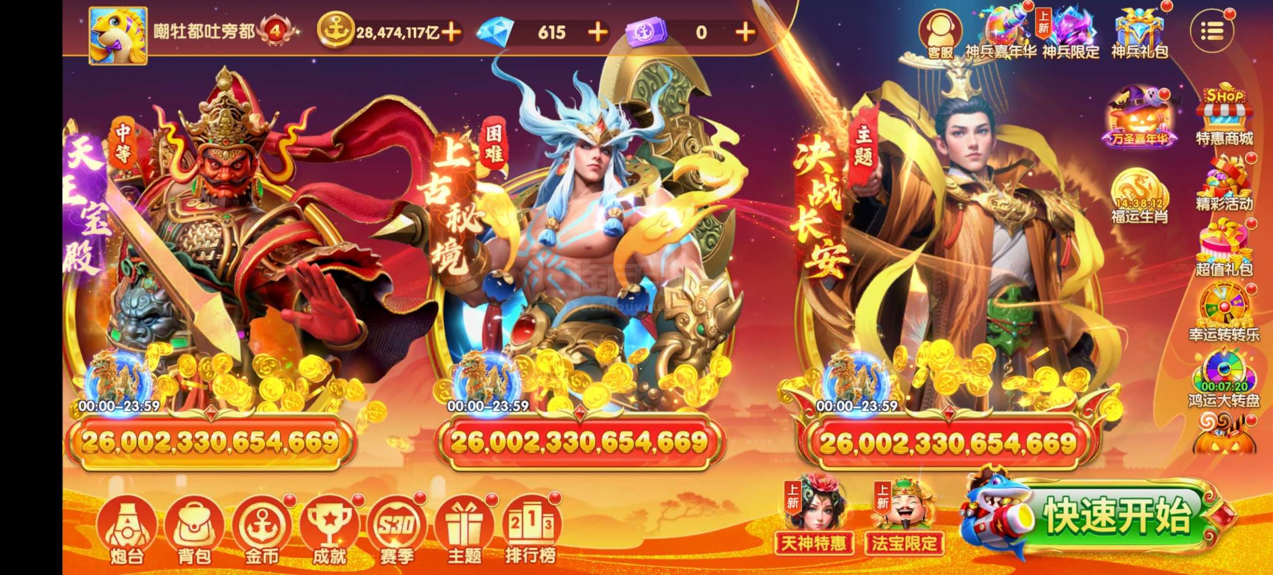 乐乐捕鱼【安卓官方】乐乐贵族4扩大版+2840万亿金币+80亿基础炮台!永久4级狂暴,道具多多!已解绑带号一起出