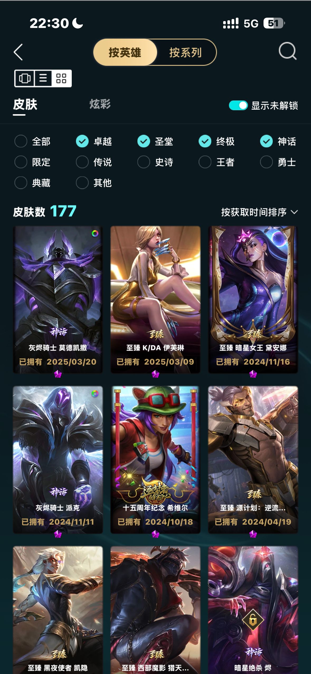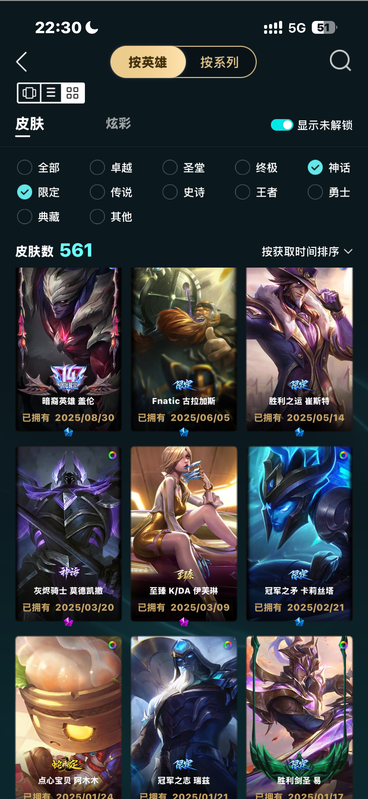 皮肤多8神话26限定 113炫彩9臻彩207皮肤
