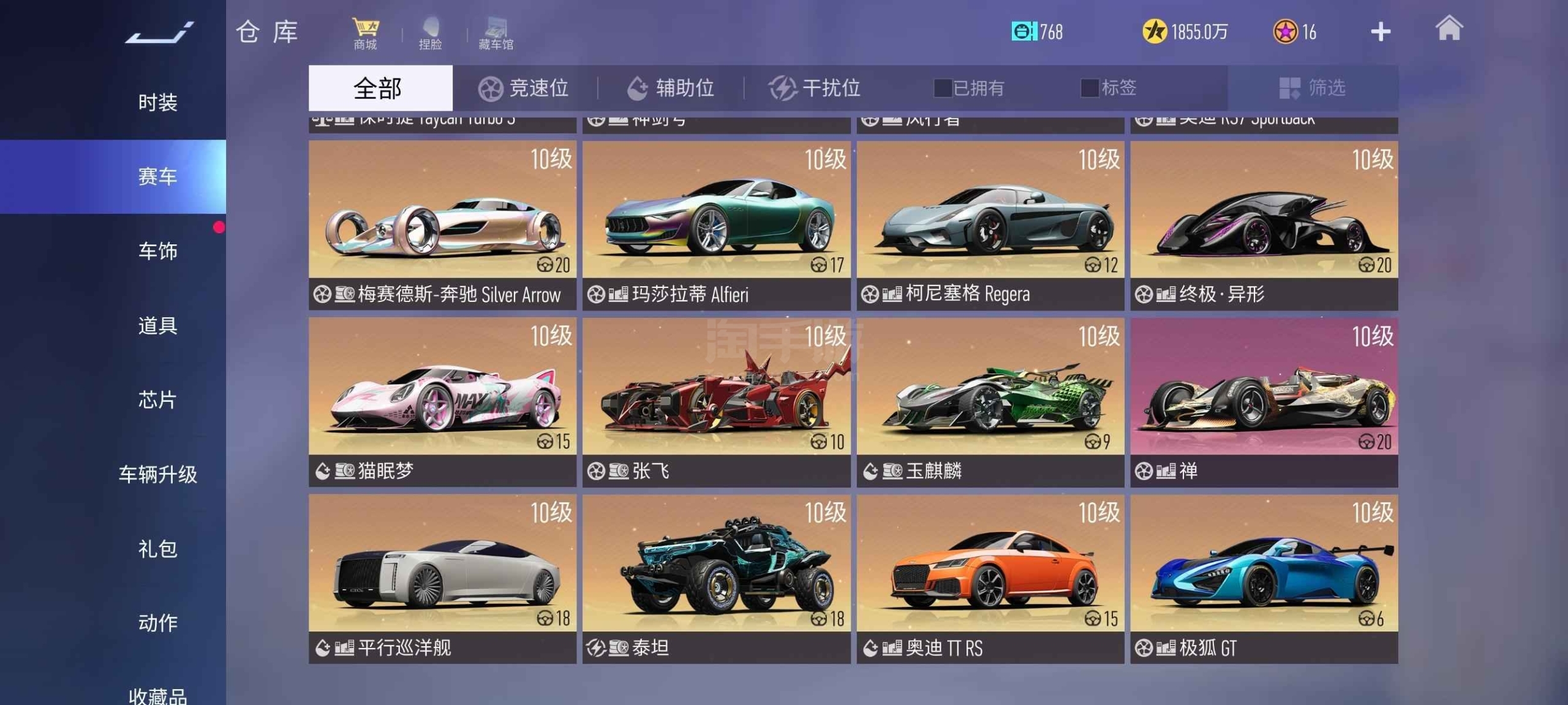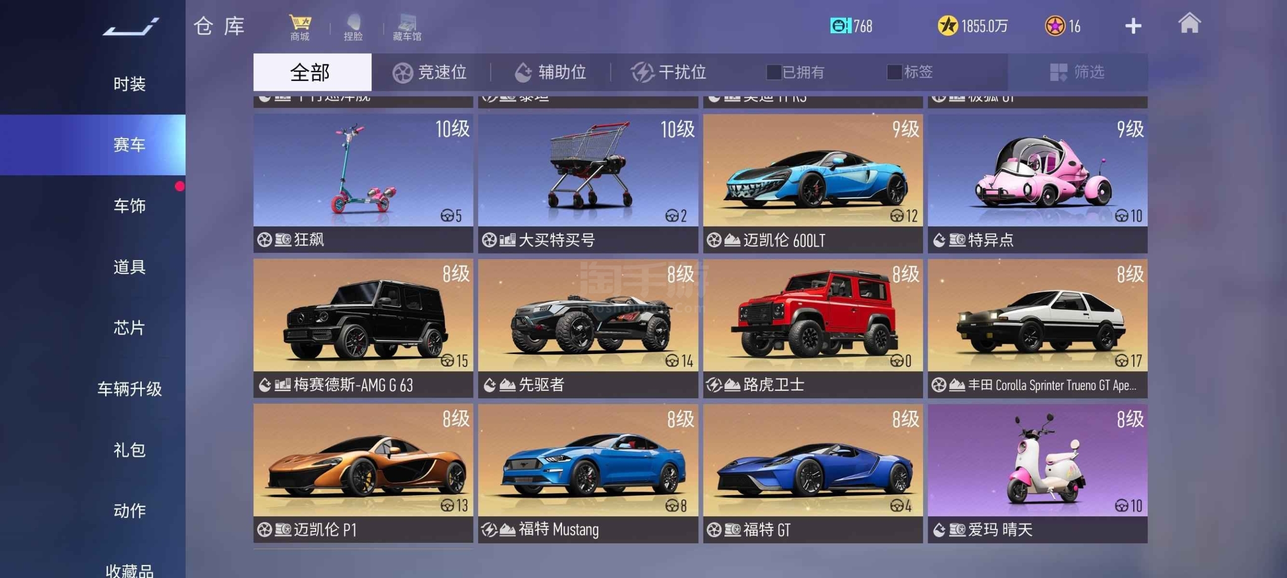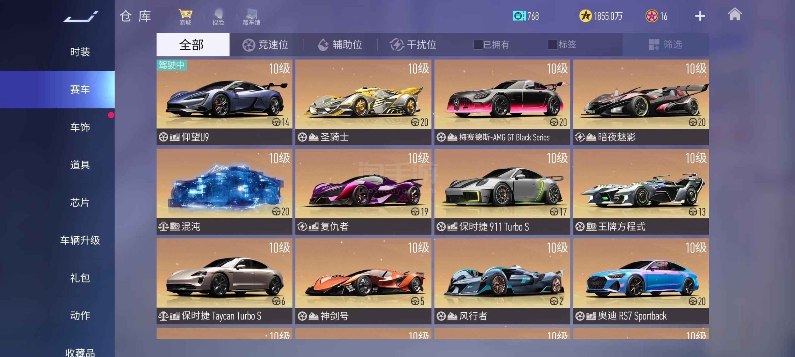 15辆盲盒车和一套按键皮肤,几个竞速也都有皮肤