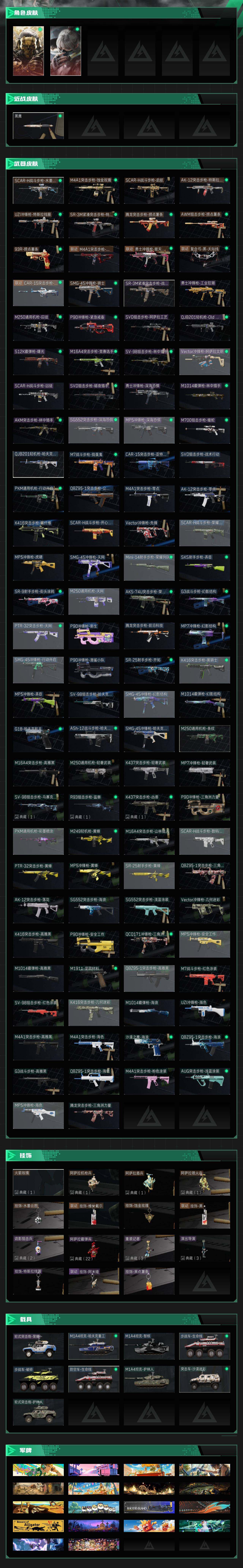 【mhlm1399】总资产:71.6M,哈夫币:36W,武器皮肤110,烽火6