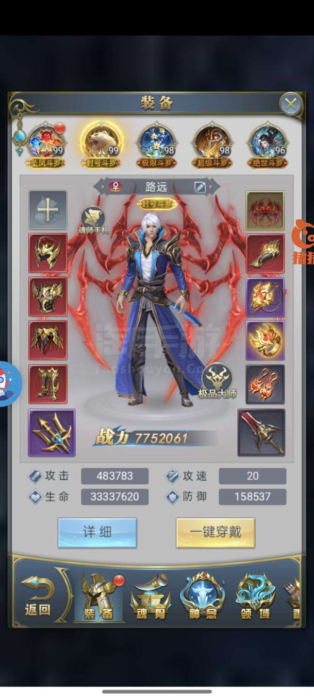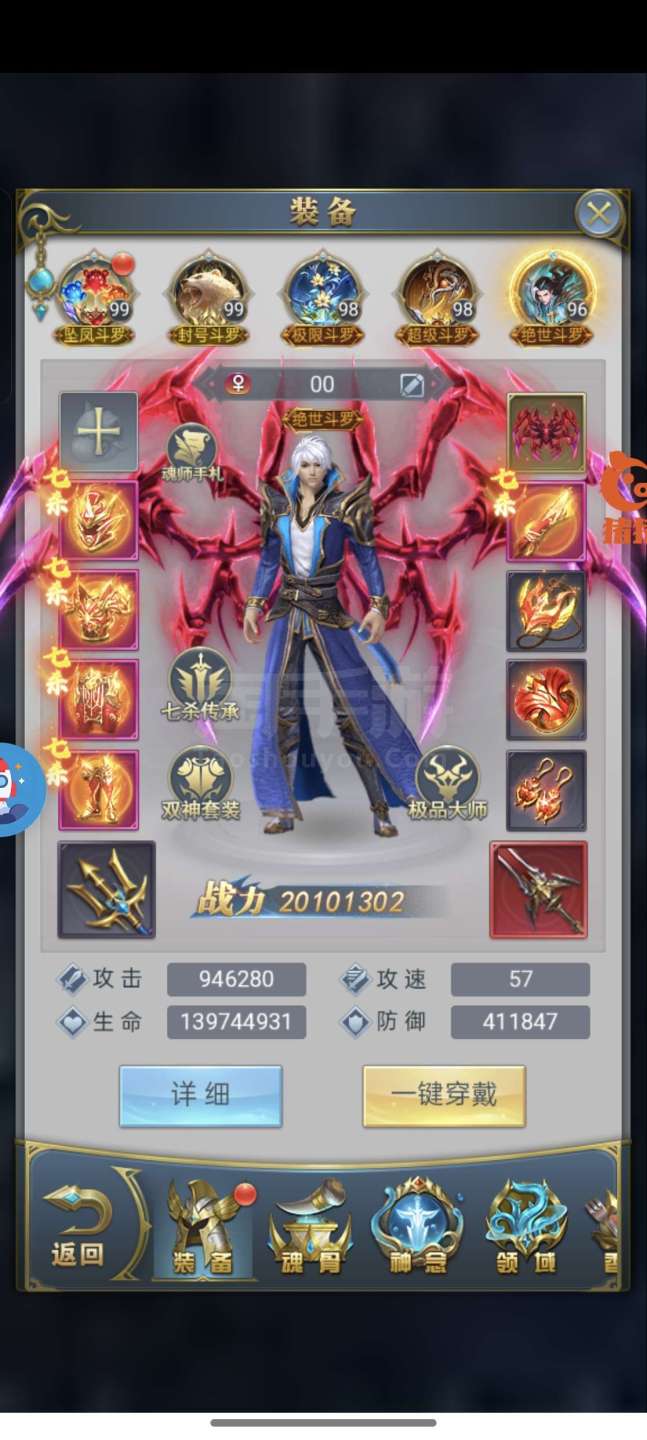 斗罗大陆H5【安卓官方】黄金修罗32v8零强化什么虚的都没上过小到皮肤称号带两个v4 1.2w钻石