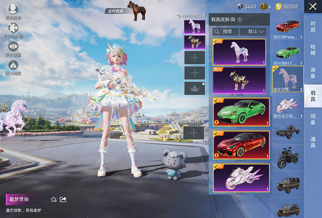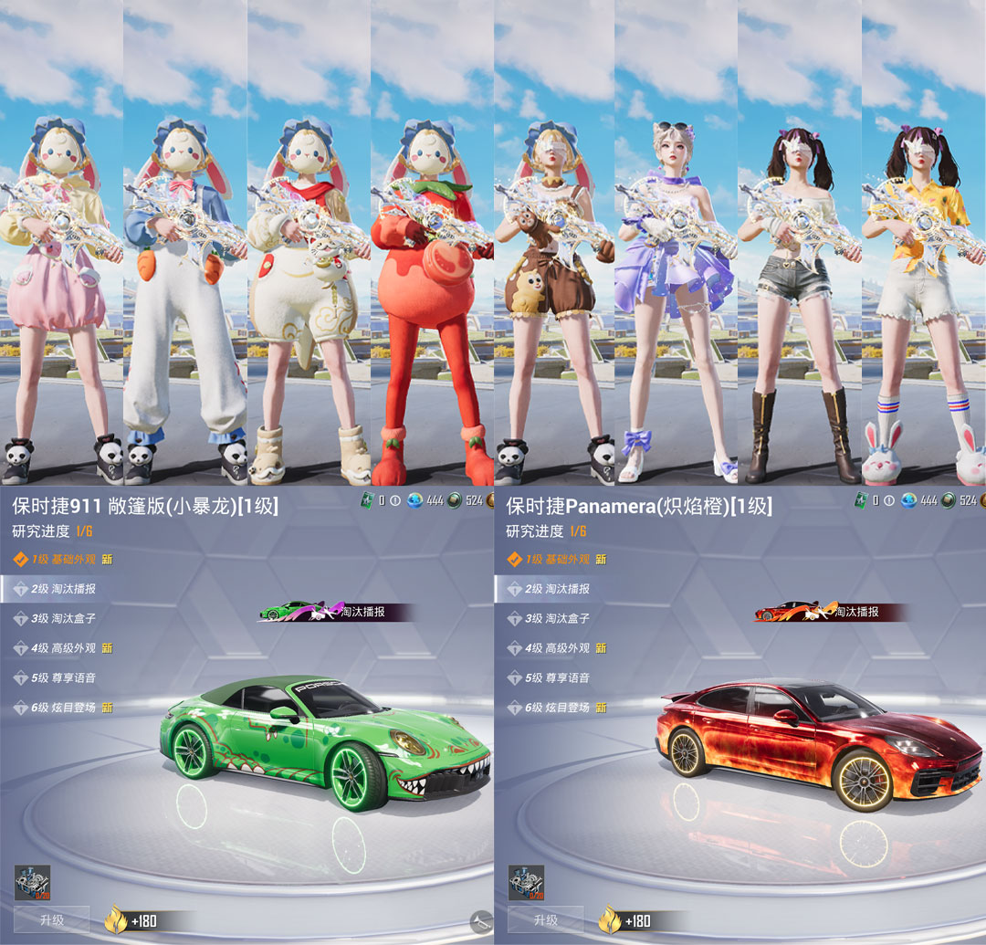 载具5:保时捷Panamera(炽焰橙)/1级,保时捷911 敞篷版(小暴龙)/1级,最终圣卫者摩托车,黑曜夜骑,,晶梦灵驹,