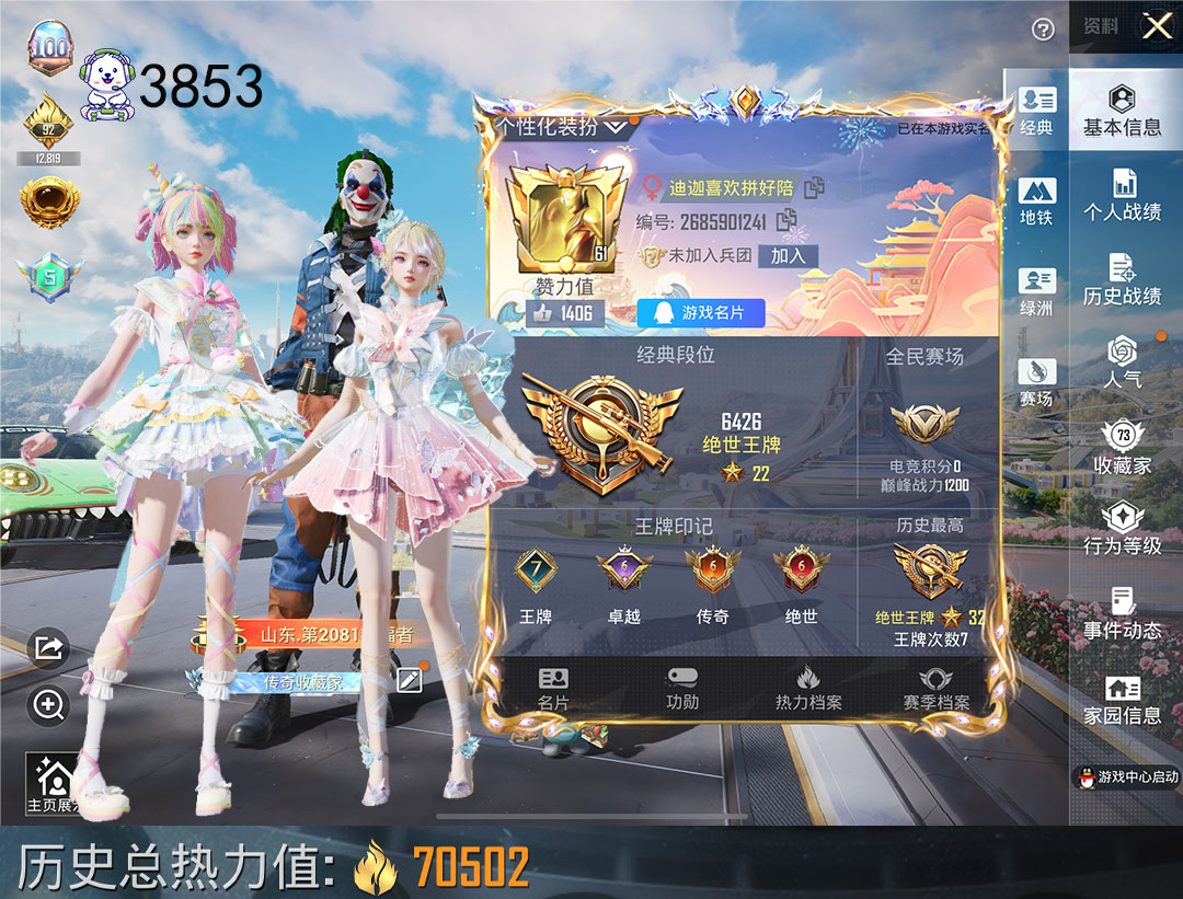 和平精英【苹果QQ】女号5车15枪16粉炽焰橙帕美一级M4灵猫9级怪诞乔克