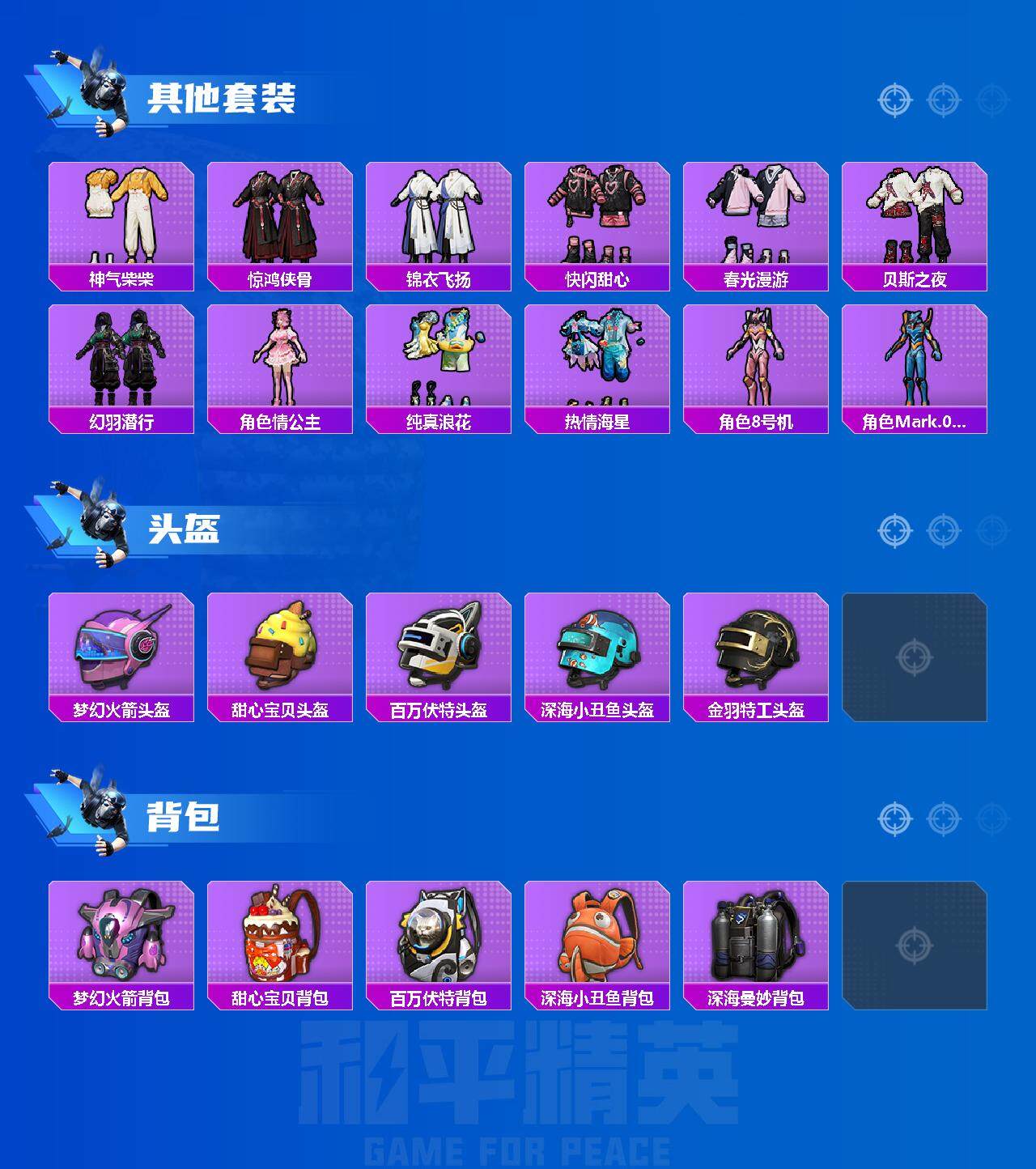【热门品类】:粉装-梦幻火箭,套装-浪漫天命,套装-都市猎人,套装-冥河战士,套装-深海小丑鱼,套装-奇异狩猎者,套装-天网终结者,套装-暗影哥特,角色-8号机,角色-Mark.06,熔岩游骑兵连帽夹克