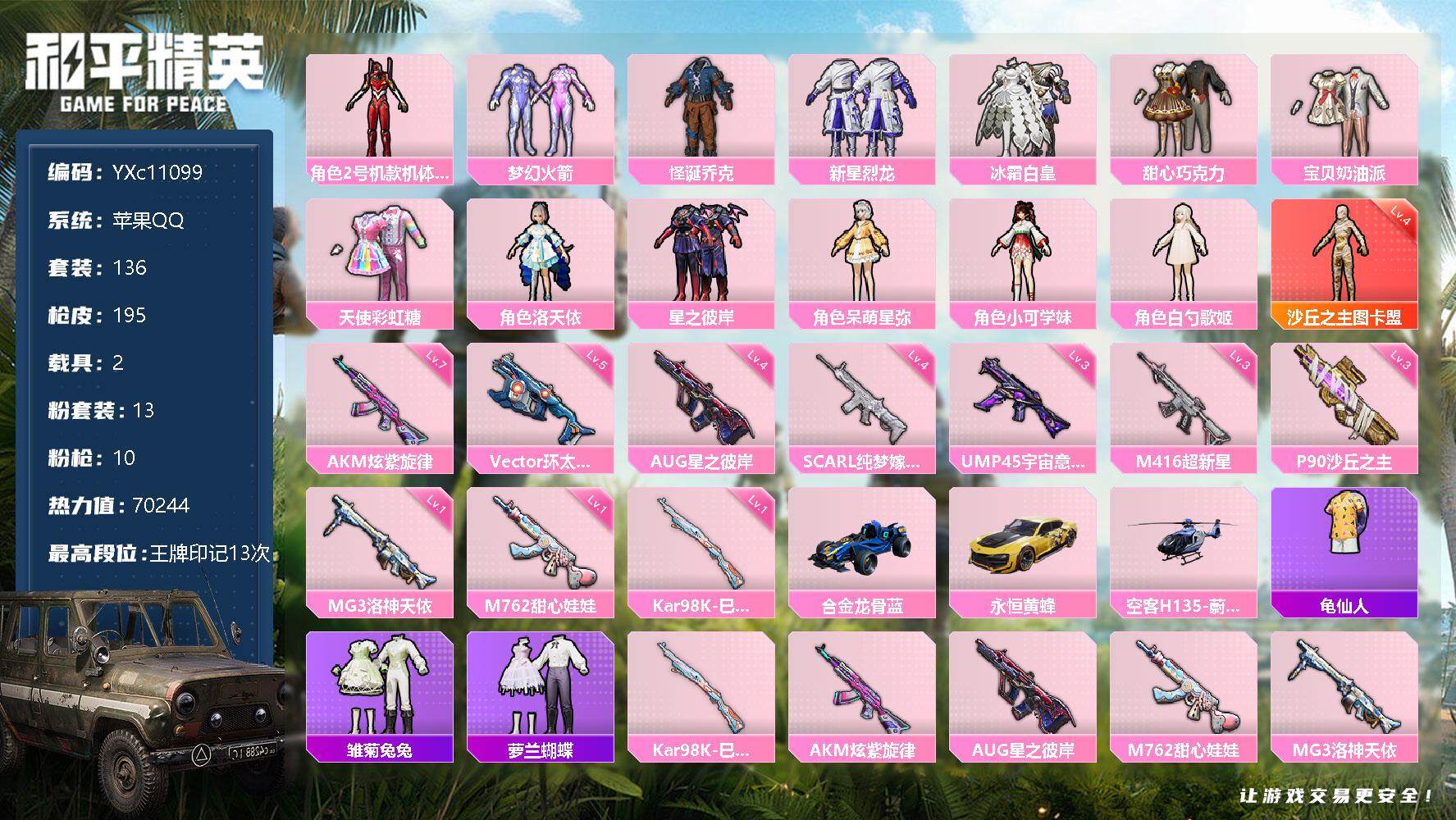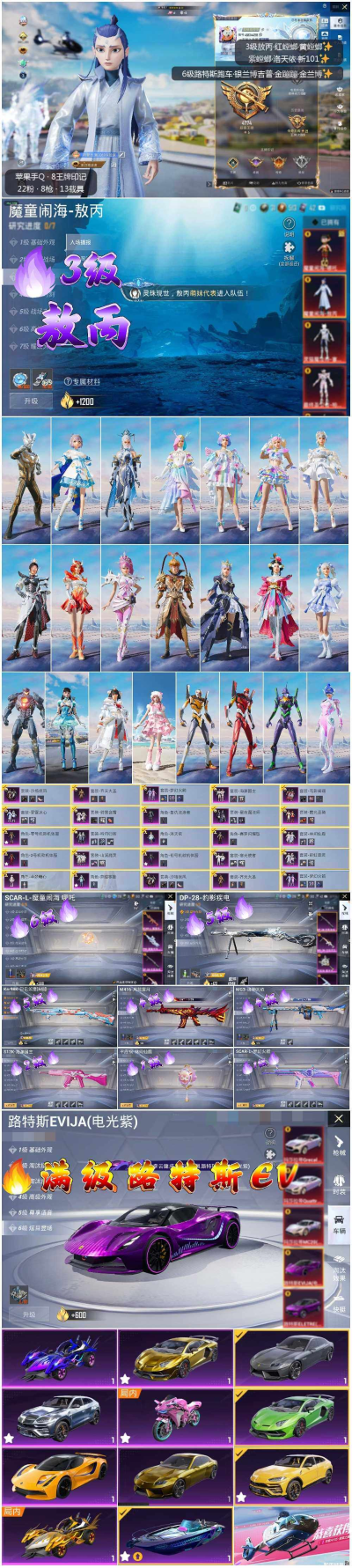 !详情看图】素材身法号/路特斯EVIJA(电光紫)(六级)/璀璨碎片669 苹果 手Q-1神装-22粉装-8特效枪-14载具-10粉色飞行器-9.2w热力值-8王牌印记-114套装-137枪皮【红色载具】:路特斯EVIJA(电光紫)(六级)【红色神装等级】:魔童闹海-敖丙(三级)