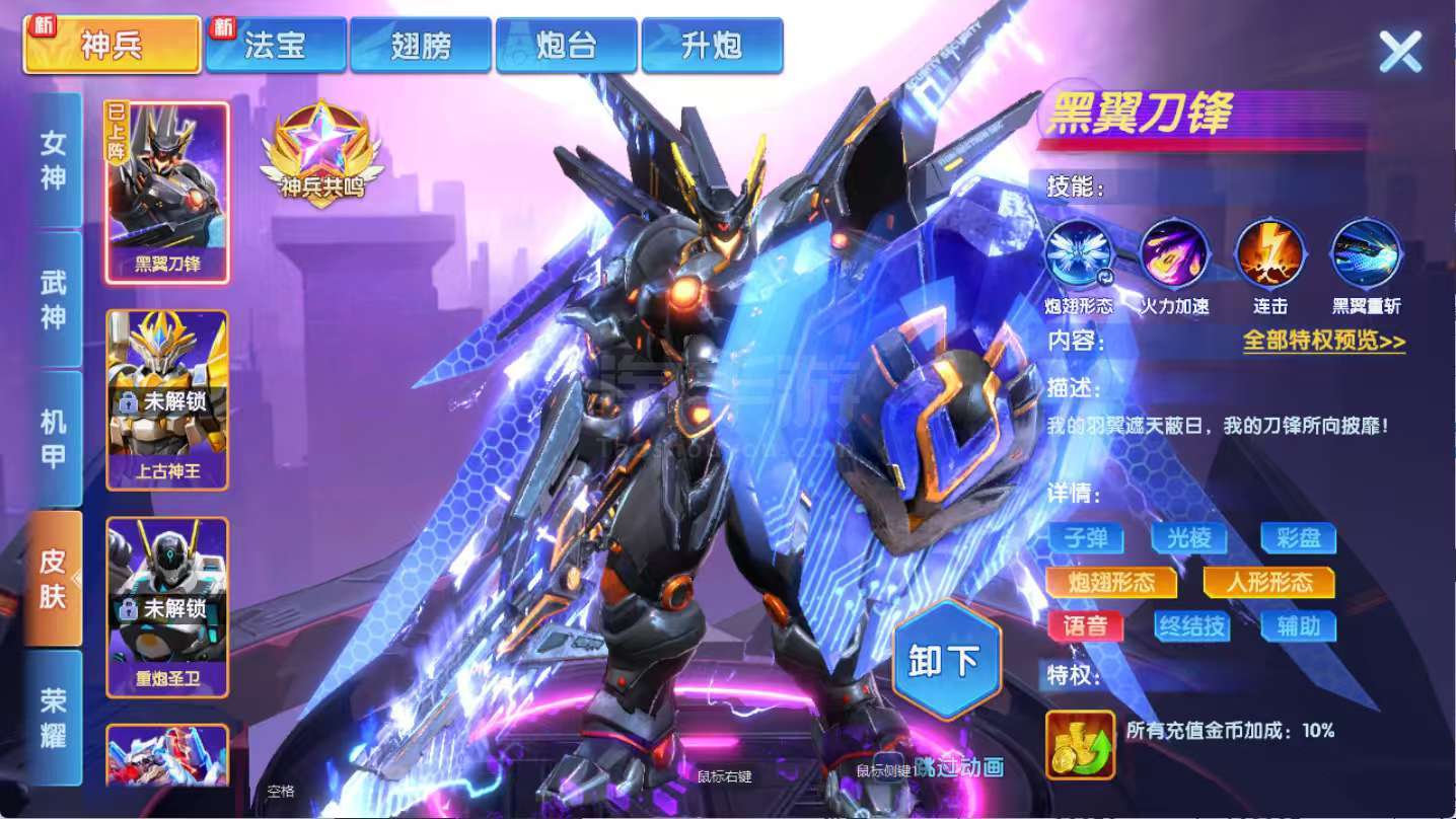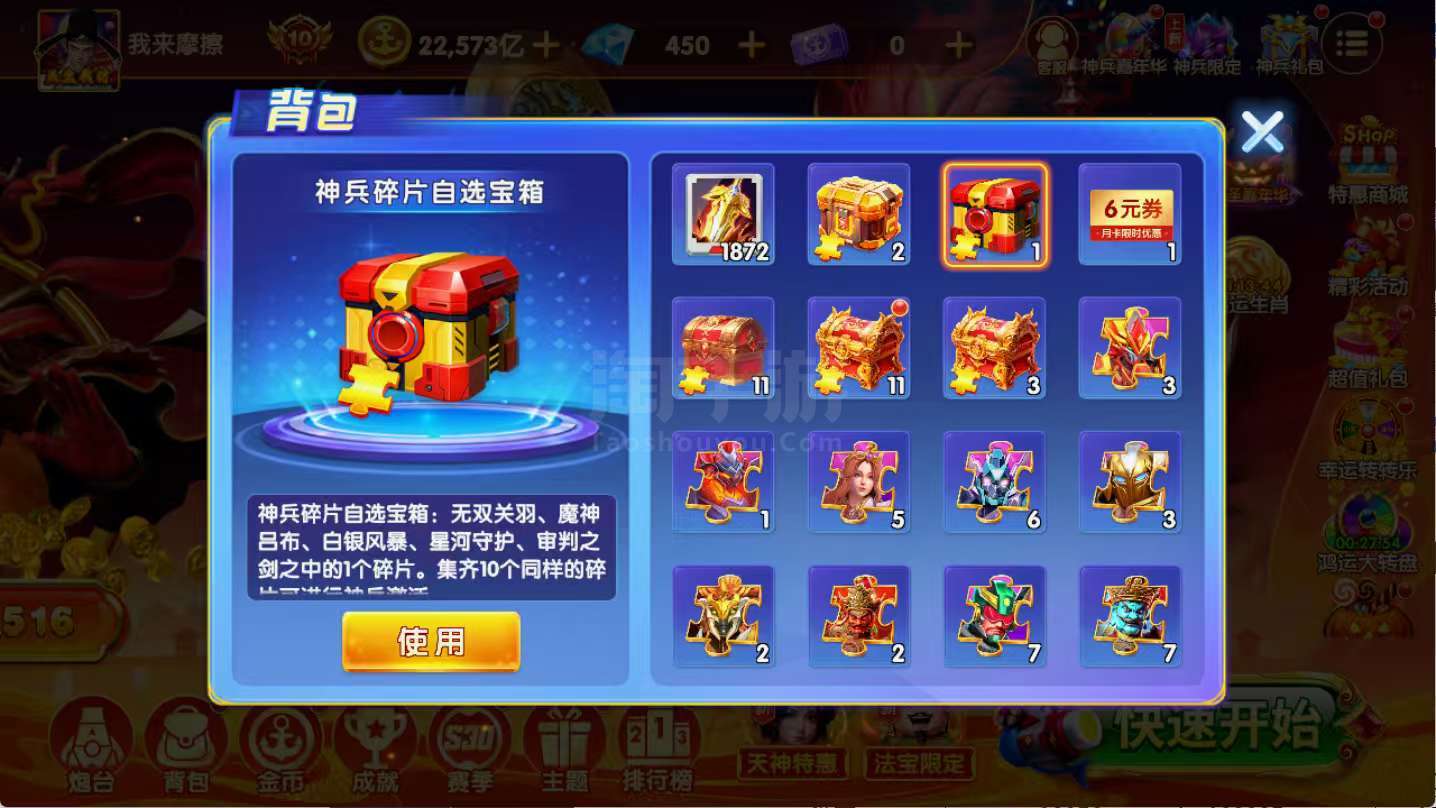 乐乐捕鱼【安卓官方】V10文字号出售 可用皮肤 女神3个 武神2个 机甲4个