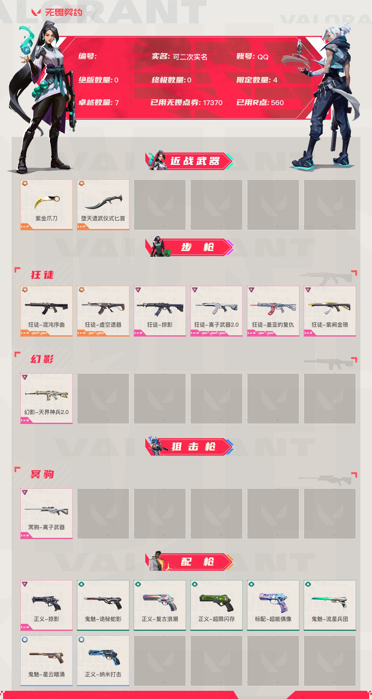 无畏契约【端游】Lv107|未定级, 刀皮数量2,枪皮数量16(绝版0限定4