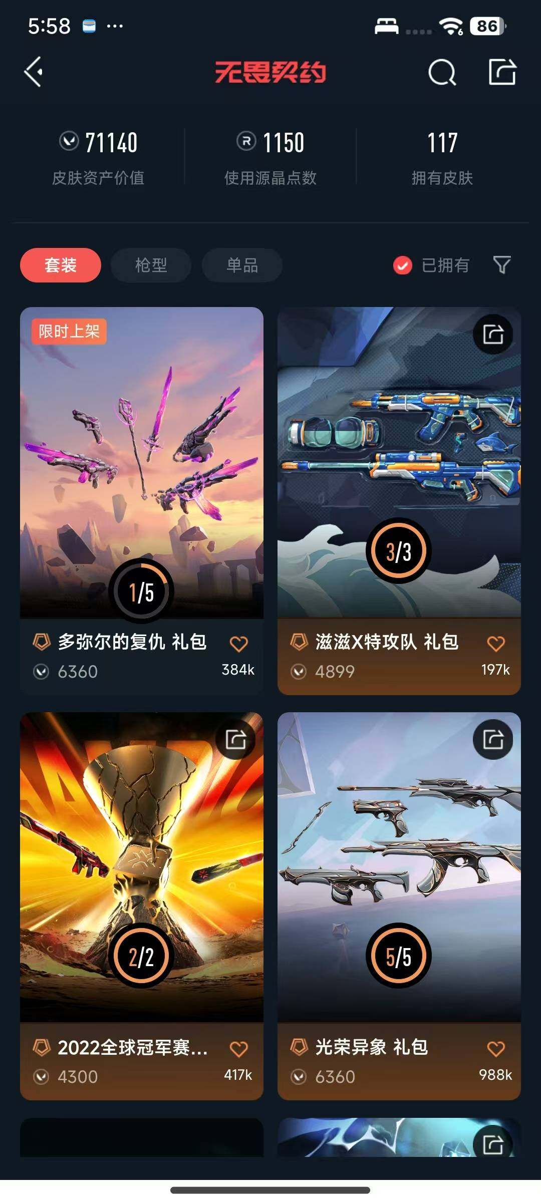 【WWN715】终极*30/传奇*2/卓越*13/皮肤*117/等级*167/段位:铂金/2022全球冠军赛套装/滋滋X特攻队套装/光荣异象套装/创·纪元套装/般若假面//2.0套装/神中神罚套装/幻棱/炼狱/维斯/暮蝶/钛狐/壹决/铁臂/捷风/雷兹/幽影/不死鸟/贤者/猎枭/蝰蛇/零/芮娜/奇乐/尚勃勒/霓虹/斯凯/夜露/星礈/K/O/海神/盖可/黑梦/钢锁/近战武器-2022全球冠军赛 蝴蝶刀/近战武器-嘟昂嘟昂超弹力水球拳套/近战武器-光荣异象 歧途/近战武器-神之刃/近战武器-镭切/近战