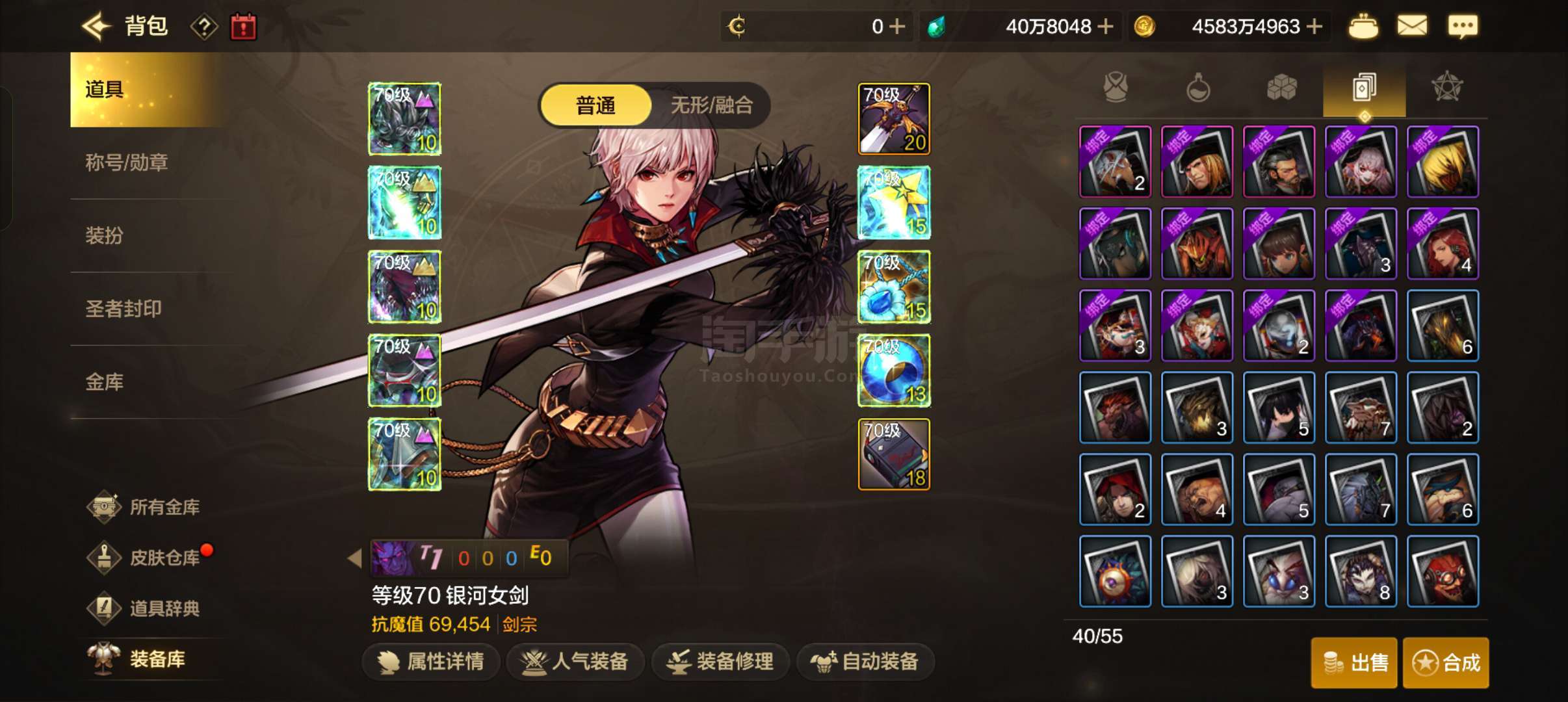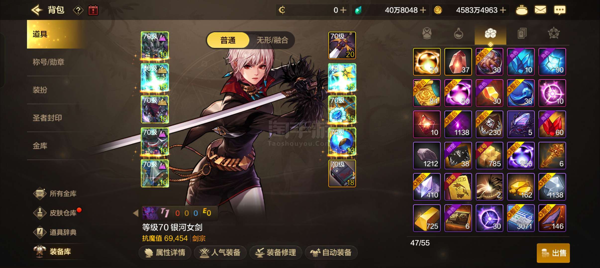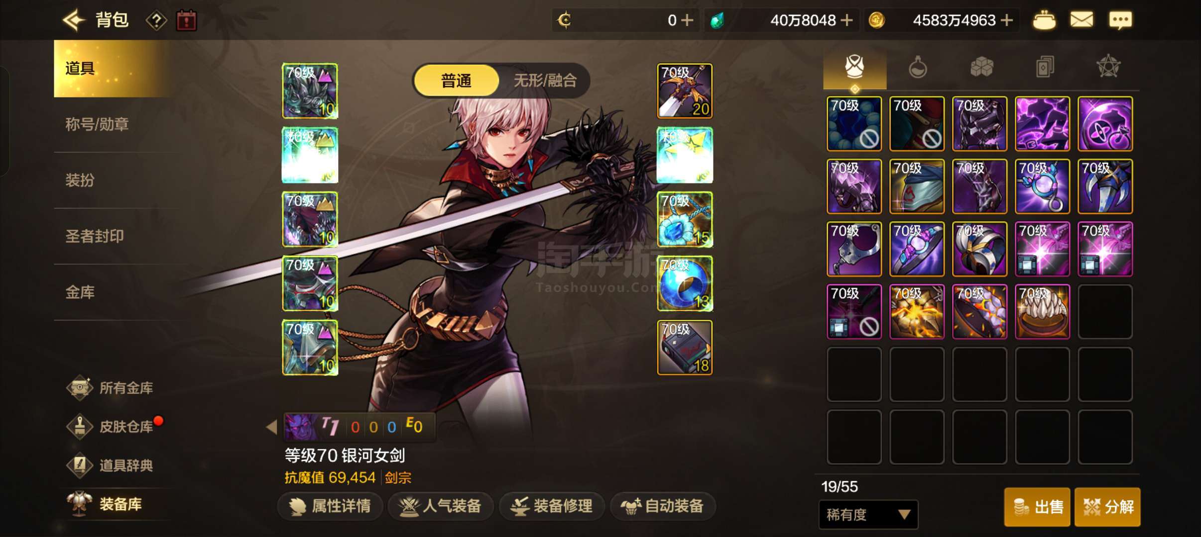 DNF手游【安卓QQ】70级剑宗抗魔69000,泰拉40W,超凡上衣和超凡首饰一套,3个满级角色