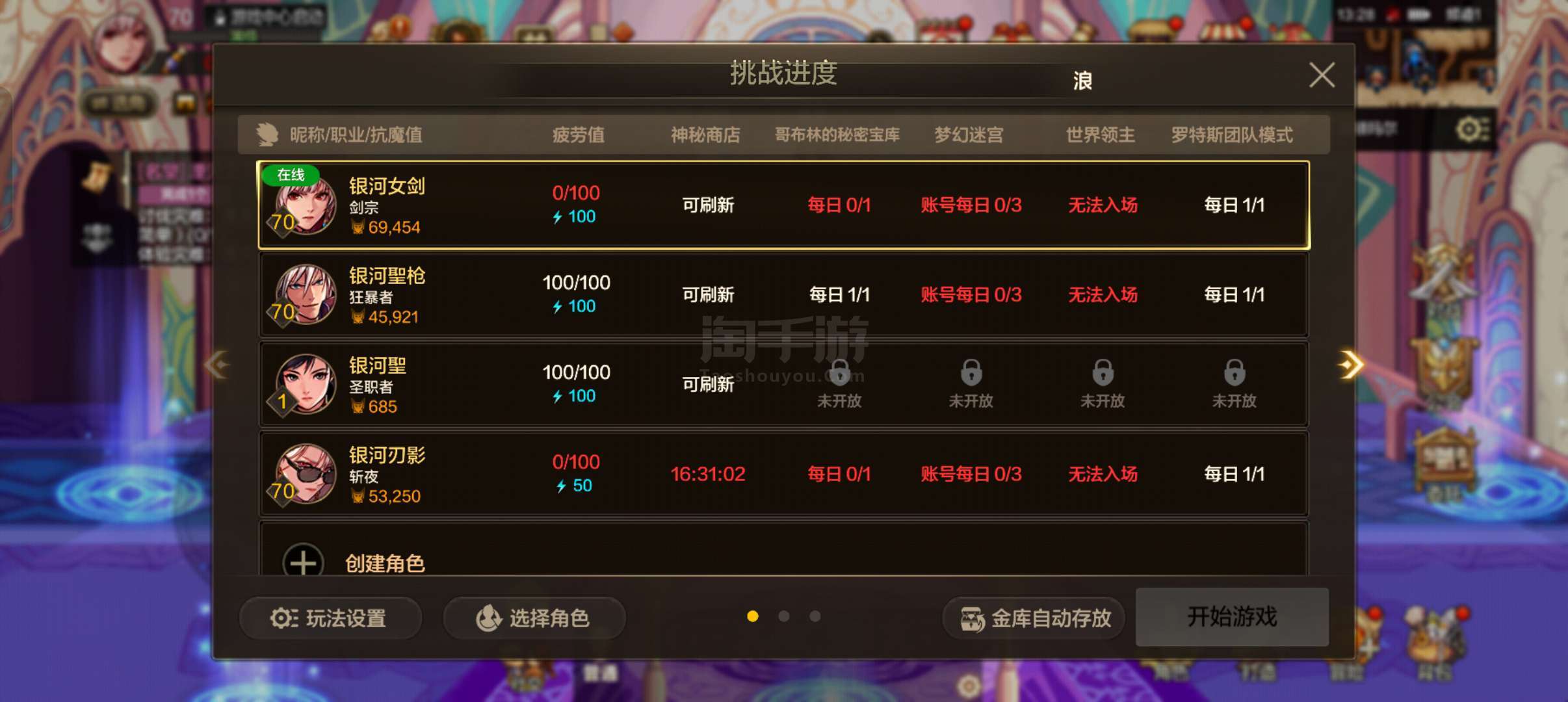 新q,未冲过值,3个满级角色,刃影高级时装未用,转职书未领