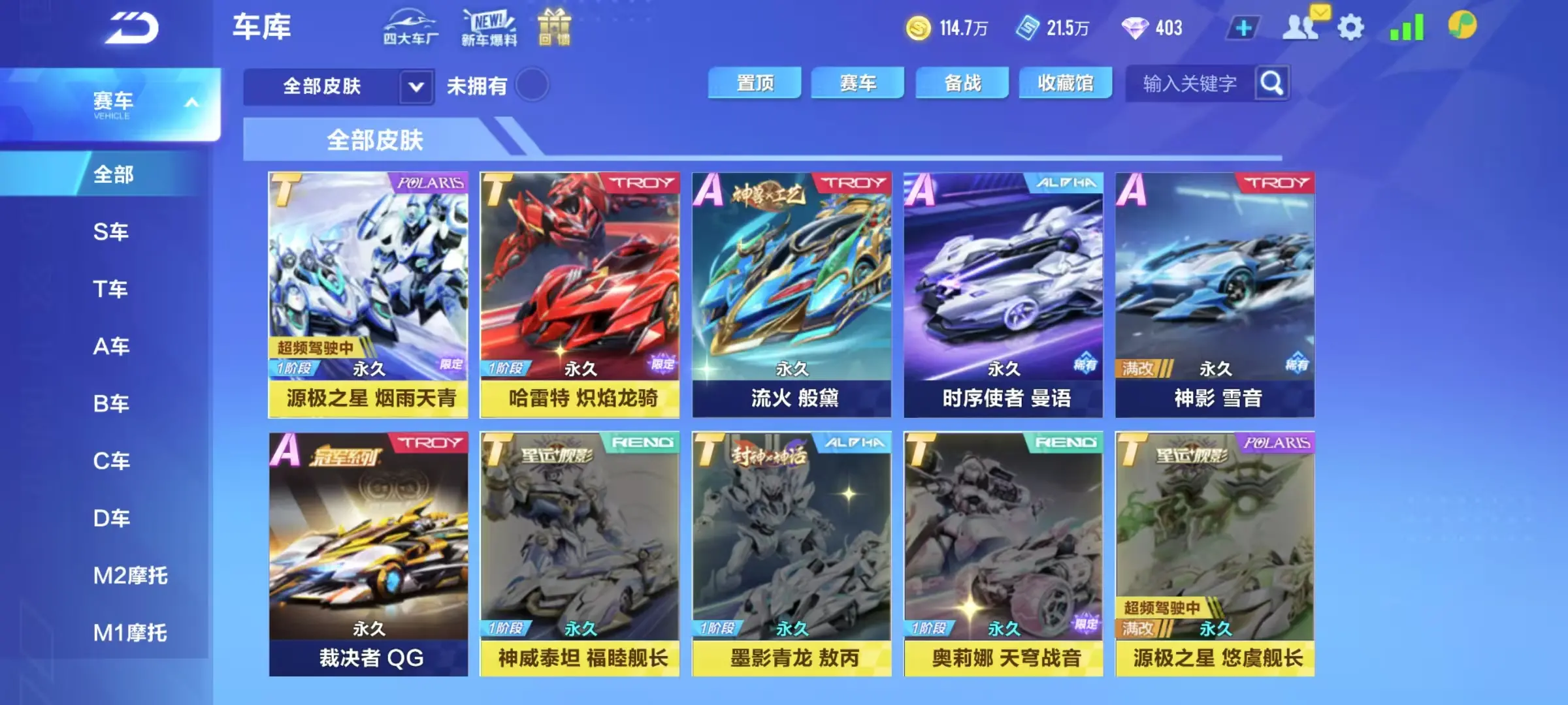 QQ飞车手游【安卓QQ】双T-烟雨源级+龙骑哈雷特//灼冰女幻生A车数量15安卓QQ