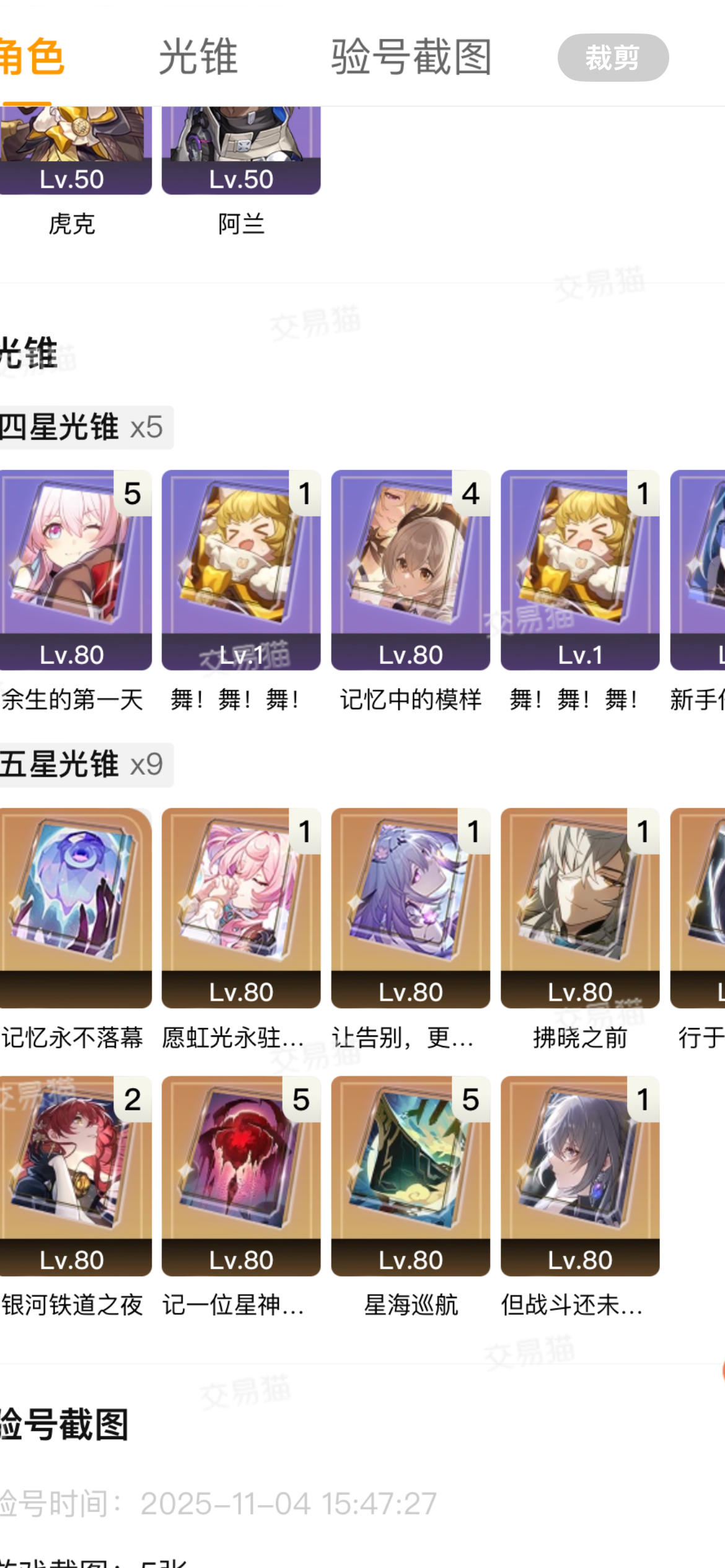 100多抽限定卷,50000星穹,后续随便抽自己喜欢的角色,记忆体系完整配队,很多角色都有,玩法组队很多,仪器词条都很好,上手直接爽完,只挂到昔年上线期间,上线还未出售就会去抽昔年了,如果还在就代表没