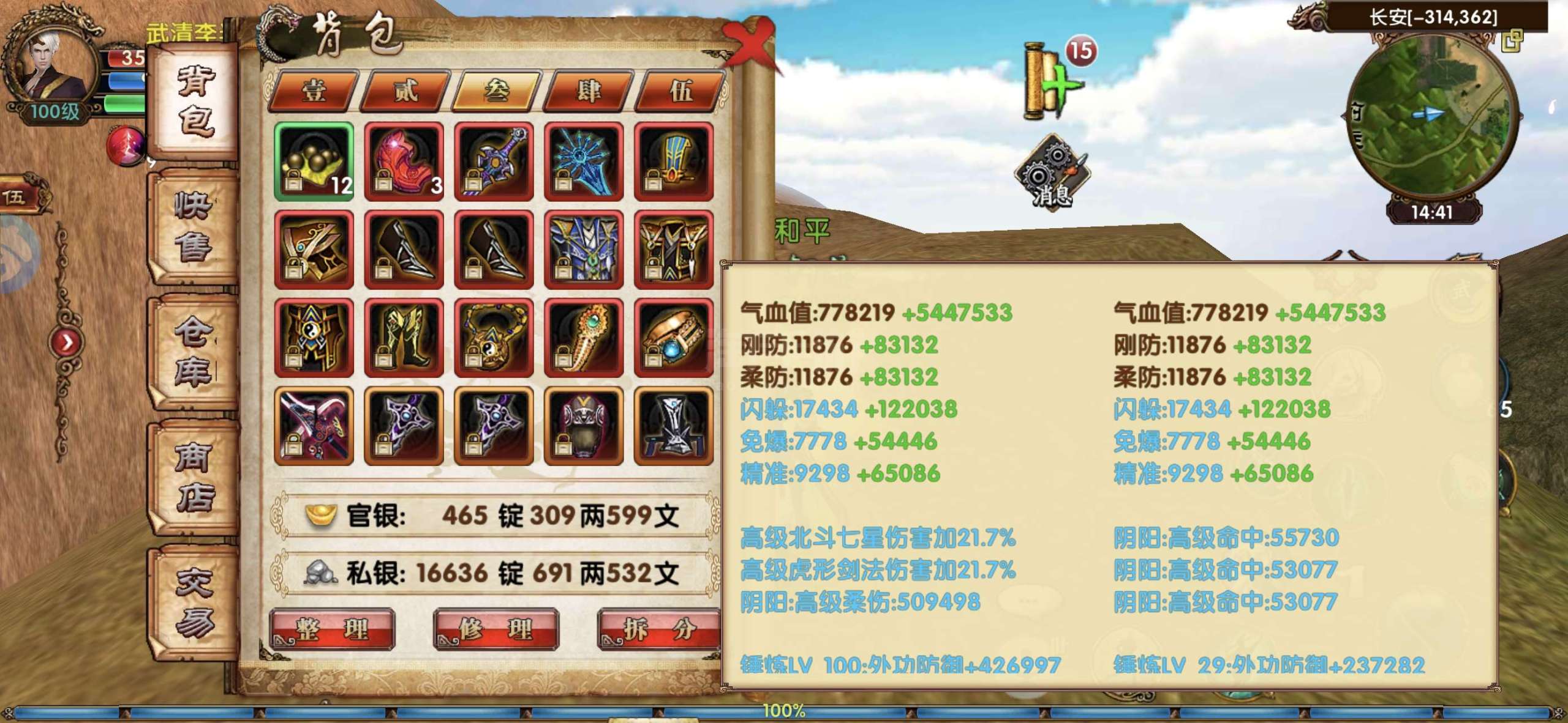 88区人多热闹,没时间玩了,22技能条双700命闪,属性套已做最高800命闪,转神龙更高,仓库460多锭马上500锭可以买转职卡,挂件,时装都很多,充值坐骑九尾狐,还有龙坐骑