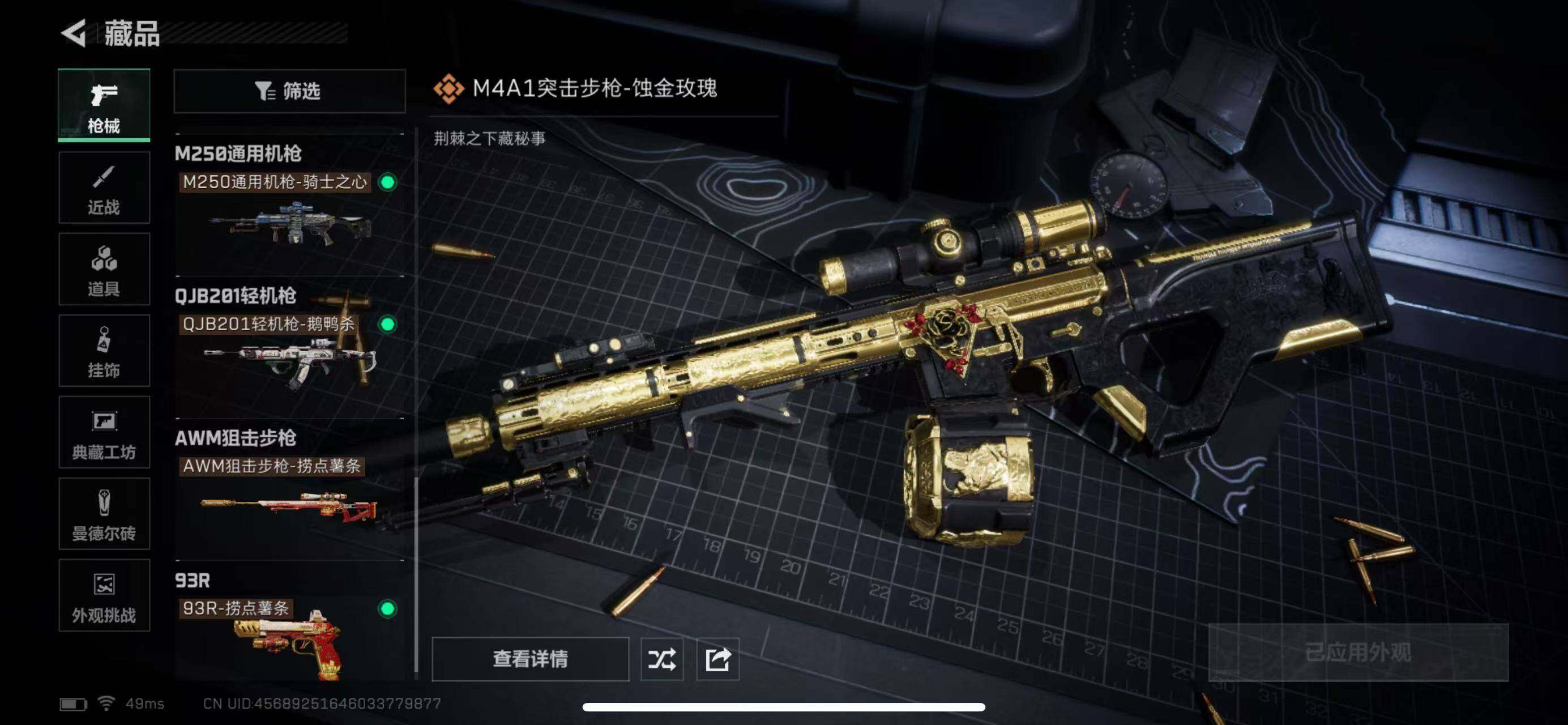 【传说级普通外观】:M4A1突击步枪-蚀金玫瑰,M4A1突击步枪-阿米娅,ASh-12战斗步枪-鹅鸭杀,腾龙突击步枪-捞点薯条,QCQ171冲锋枪-鹅鸭杀,M250通用机枪-骑士