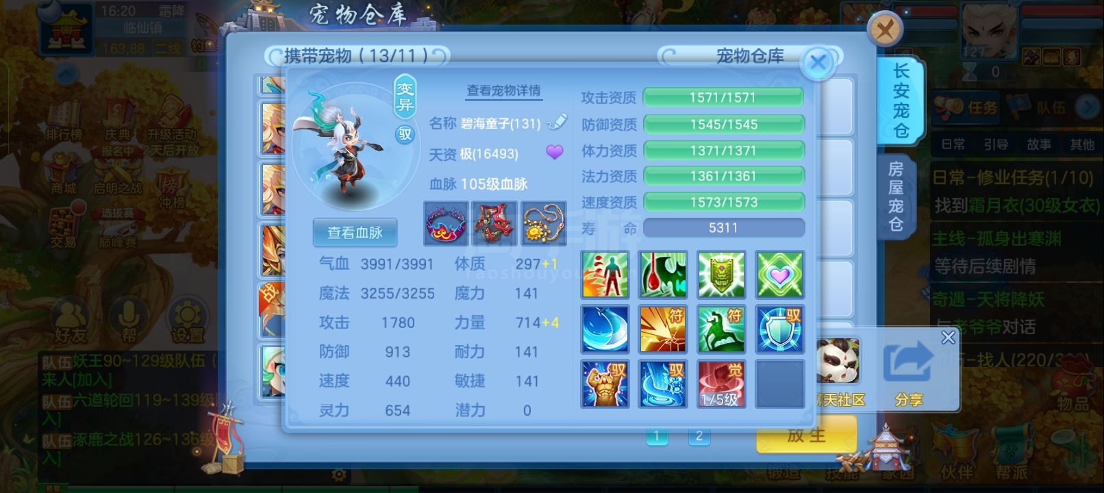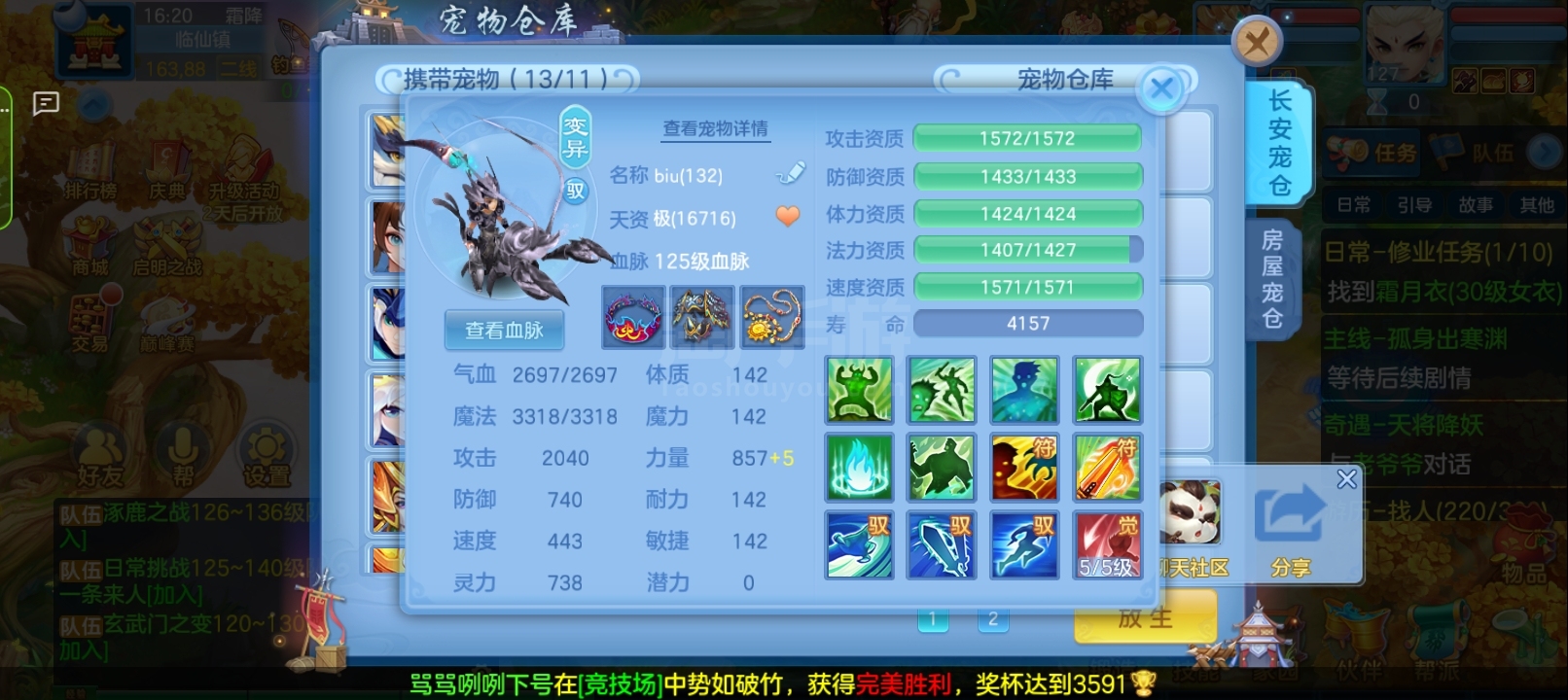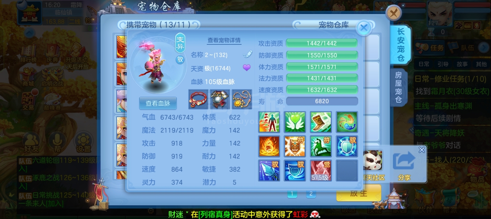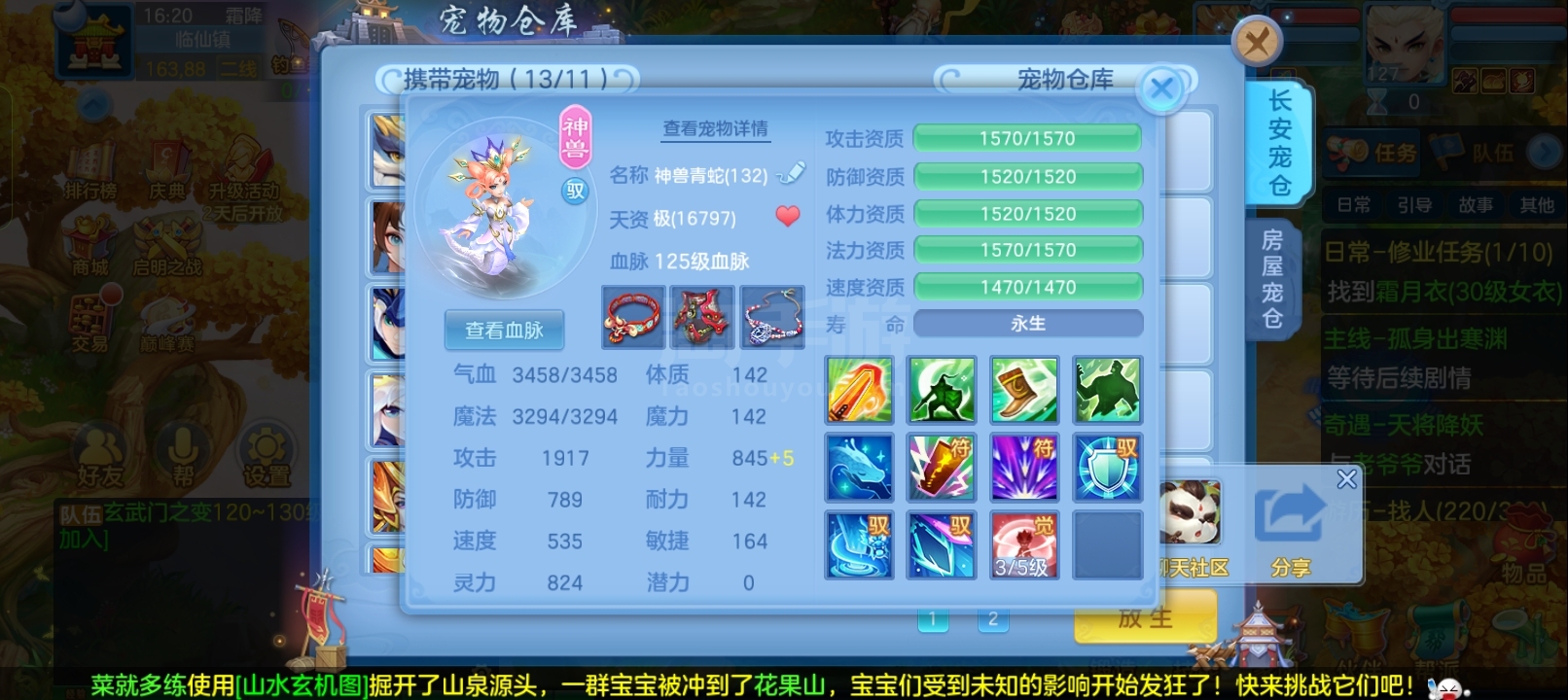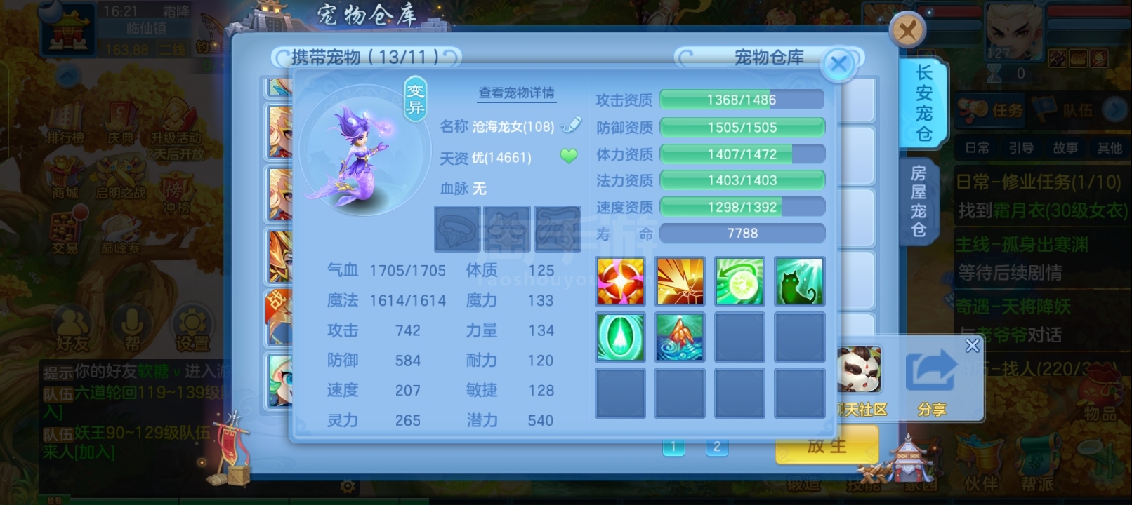 幻唐志:逍遥外传(神武4)【安卓官方】水龙吟127跟等级龙宫双内丹神兽12段混11高级坐骑。
