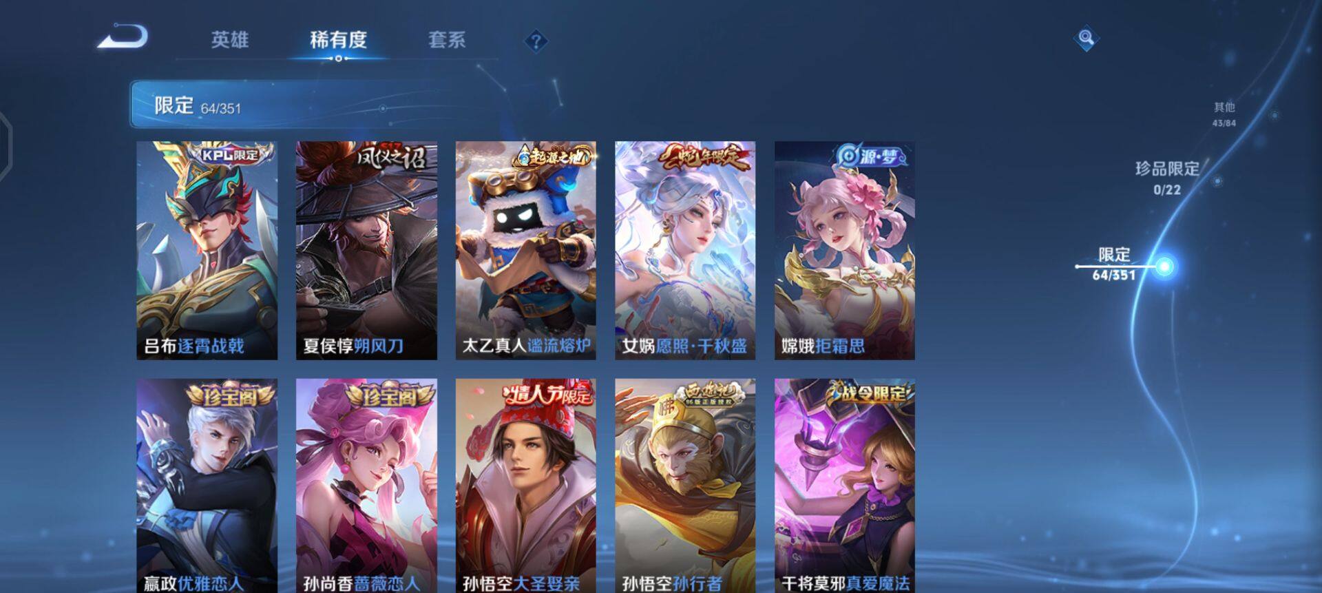 【传说皮肤】:女娲愿照千秋盛,桑启鸣野蒿,曜李逍遥 ,镜炽阳神光,关羽武圣,李信一念神魔,貂蝉猫影幻舞,干将莫邪久胜战神,诸葛亮武陵仙君