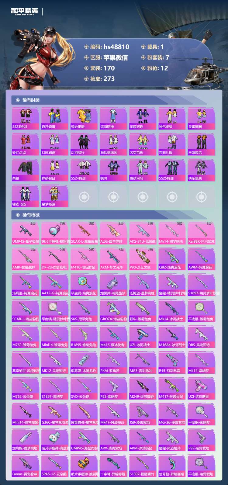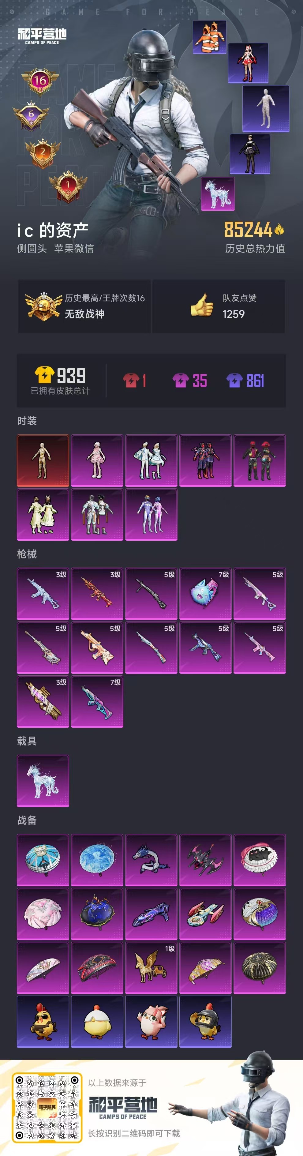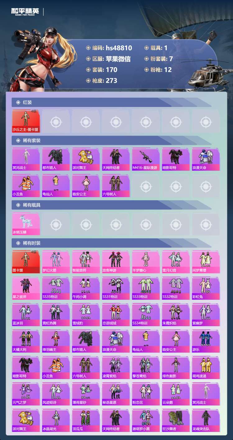 hs48810 苹果v-16王牌印记-有战神框-1红装-7粉装-12特效枪-1载具-85244热力