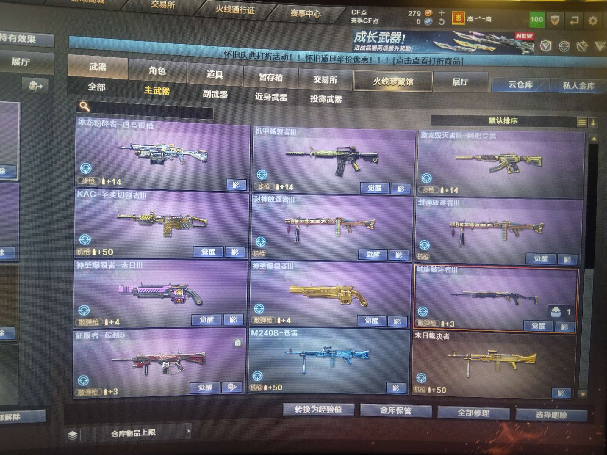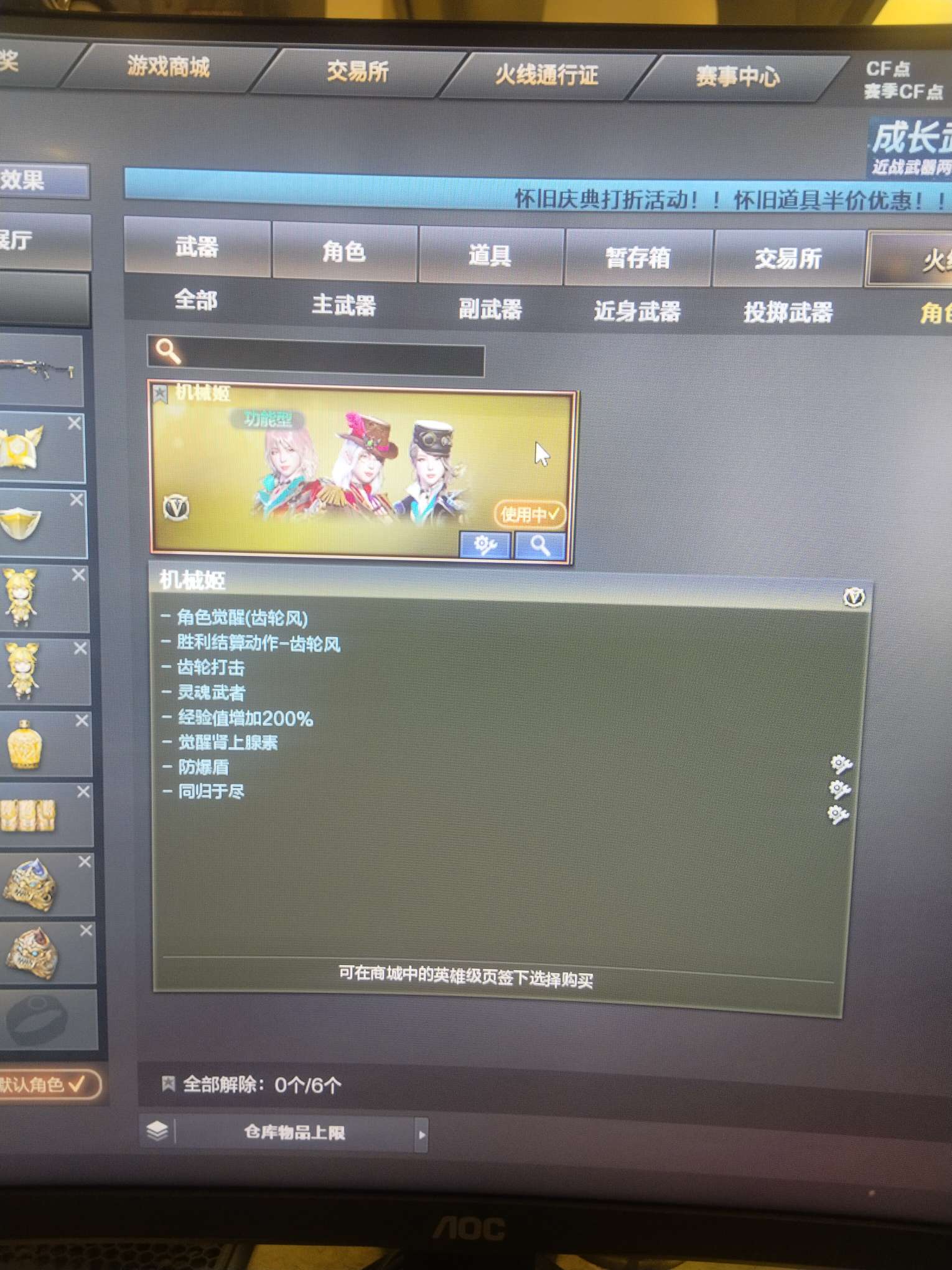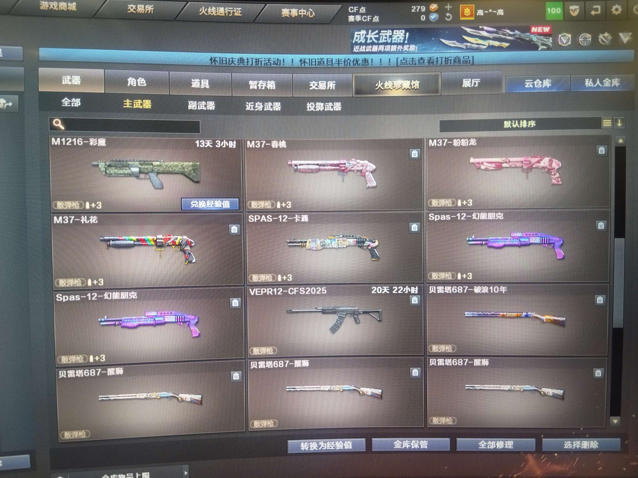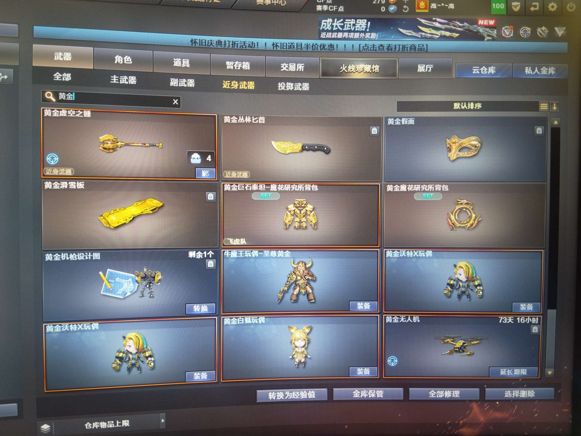 穿越火线(CF)【端游】31V。主要打挑战探险为主,臻选狐狸,探险9阶段,机械姬挑战探险,随时换模式。东西多,照片发不完