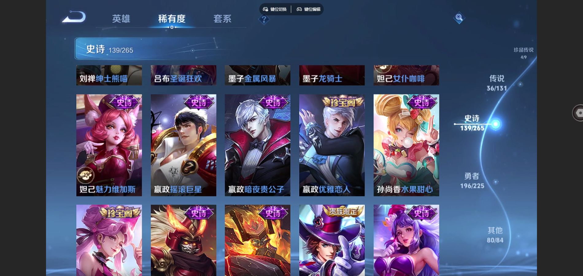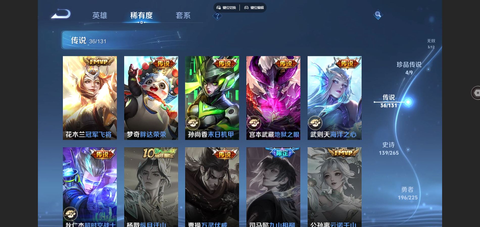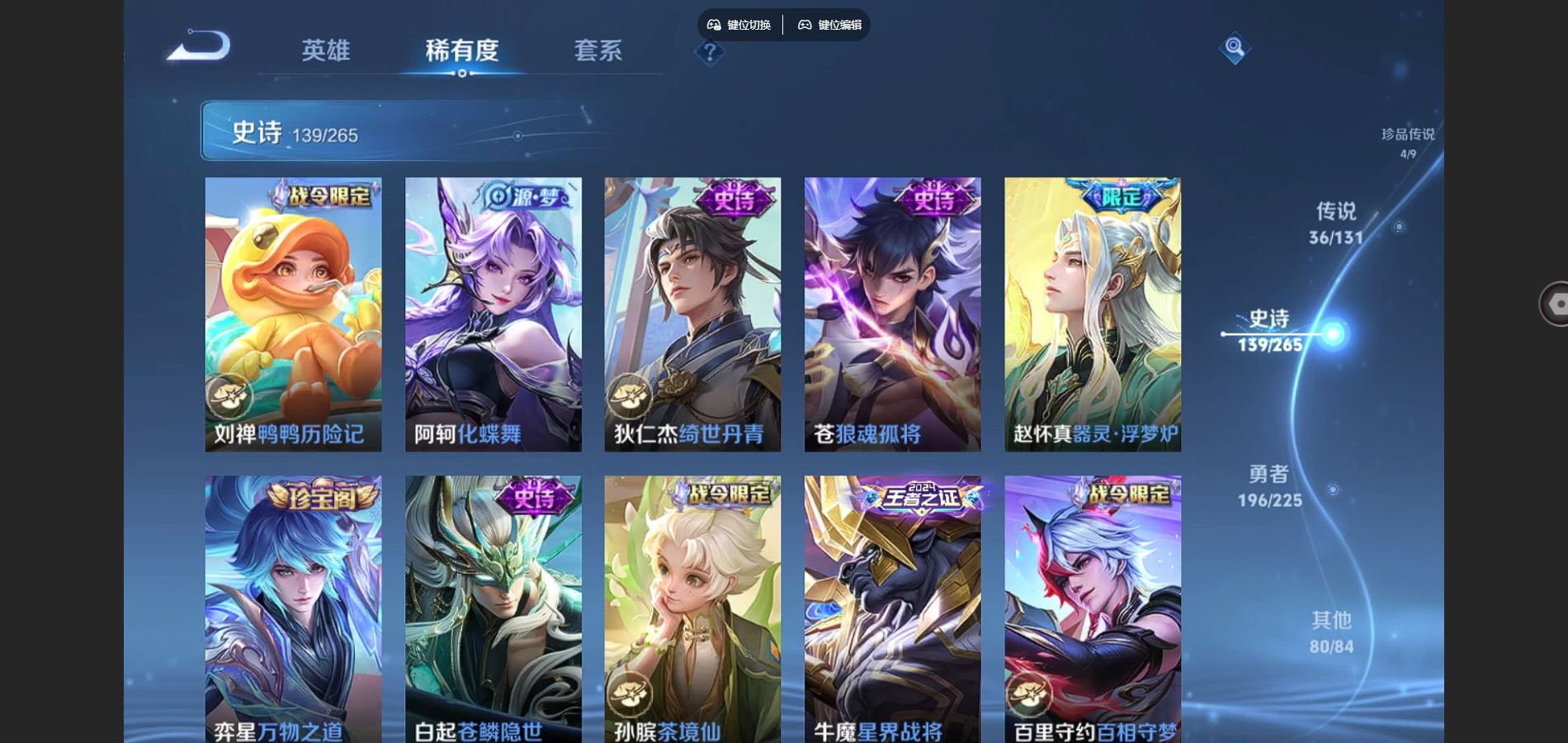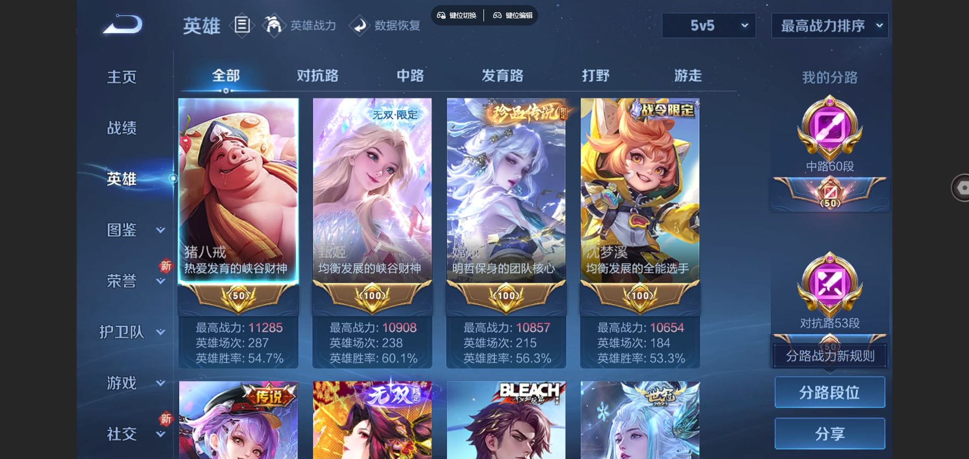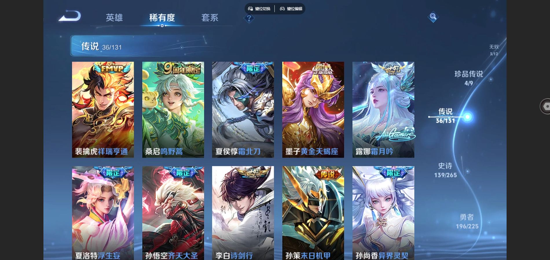 461皮肤/3典藏/3无双/4珍品传说/36传说/中路60段 对抗路53段 金标猪八戒 金标嫦娥 金