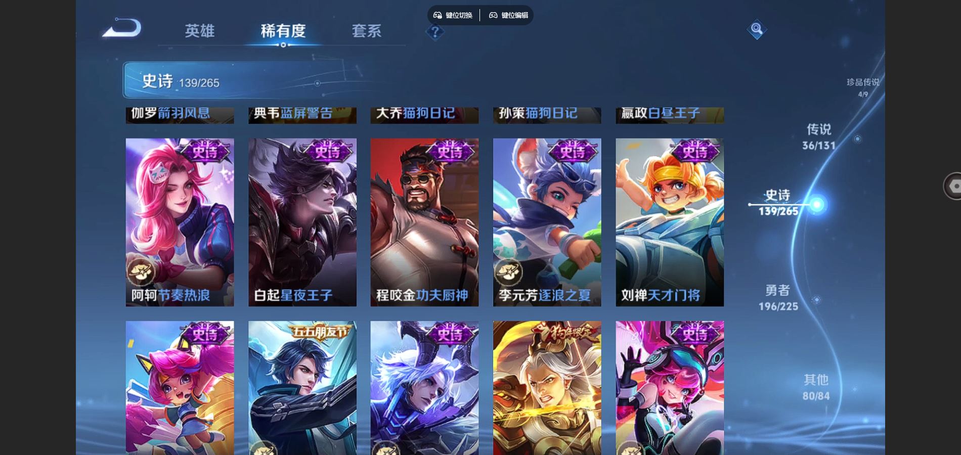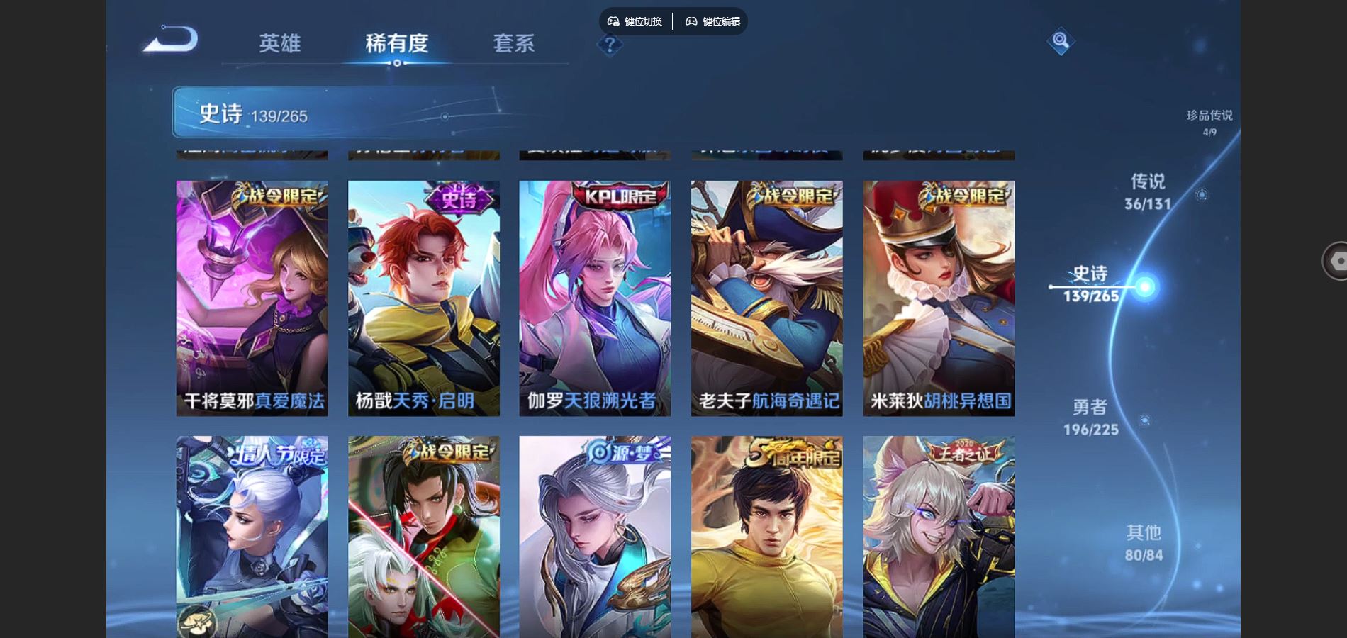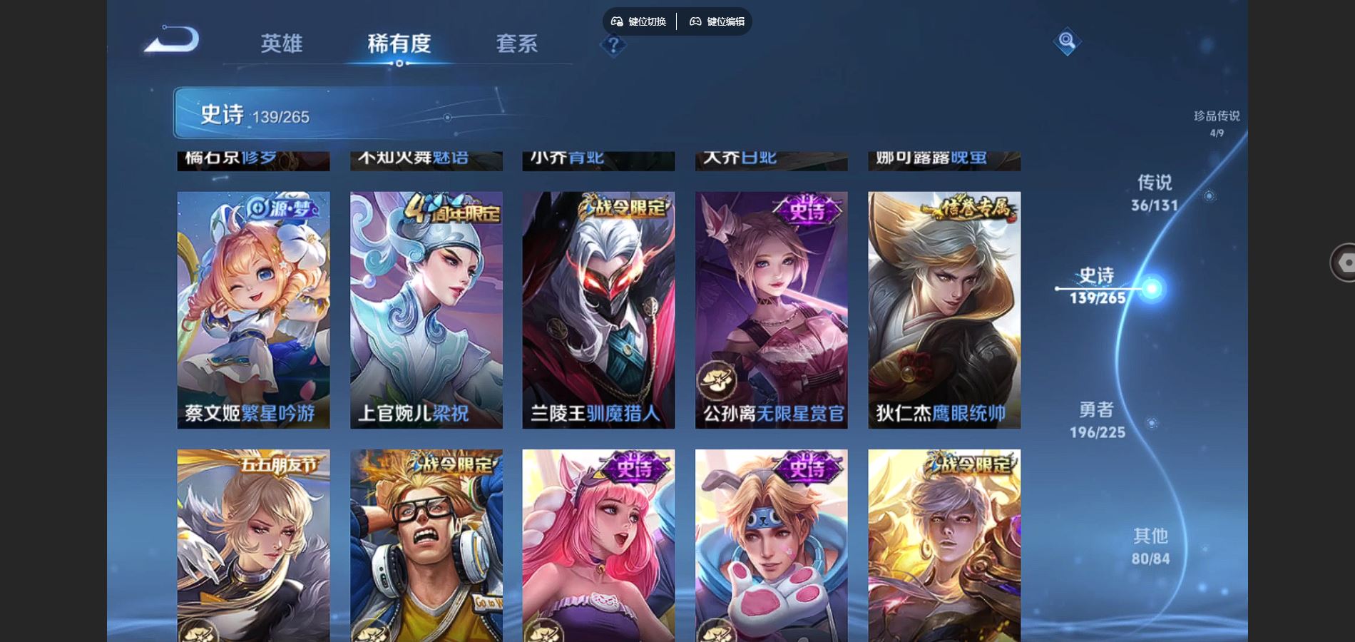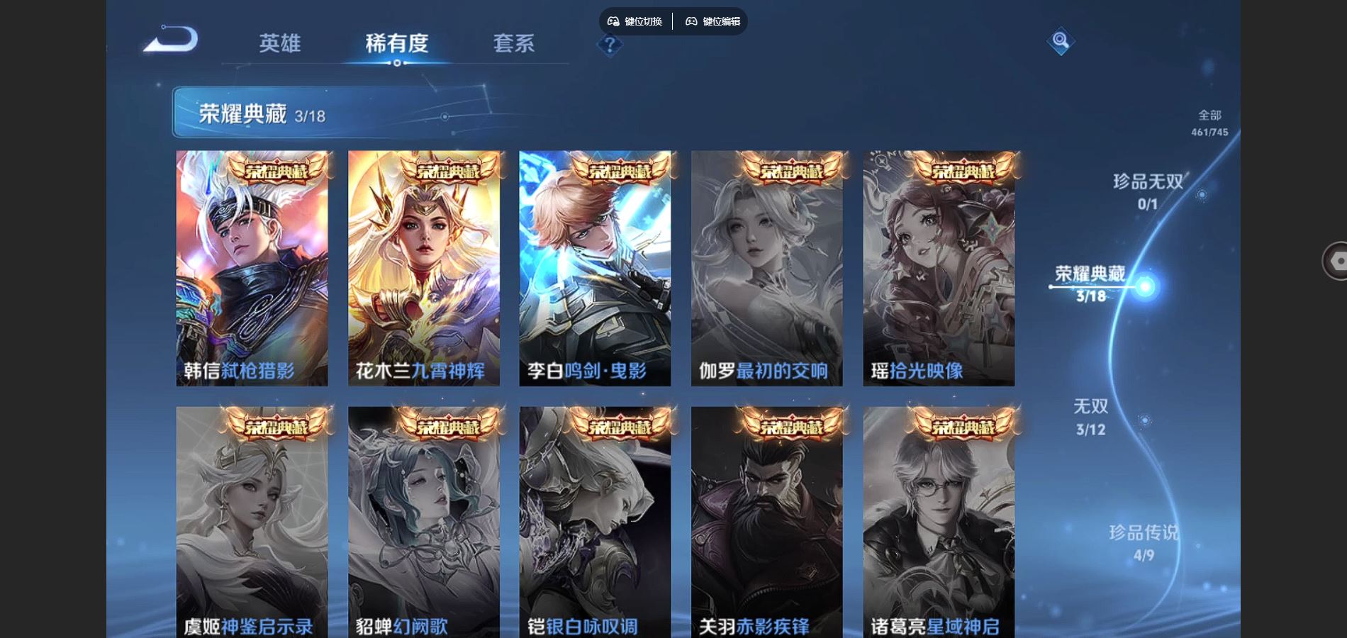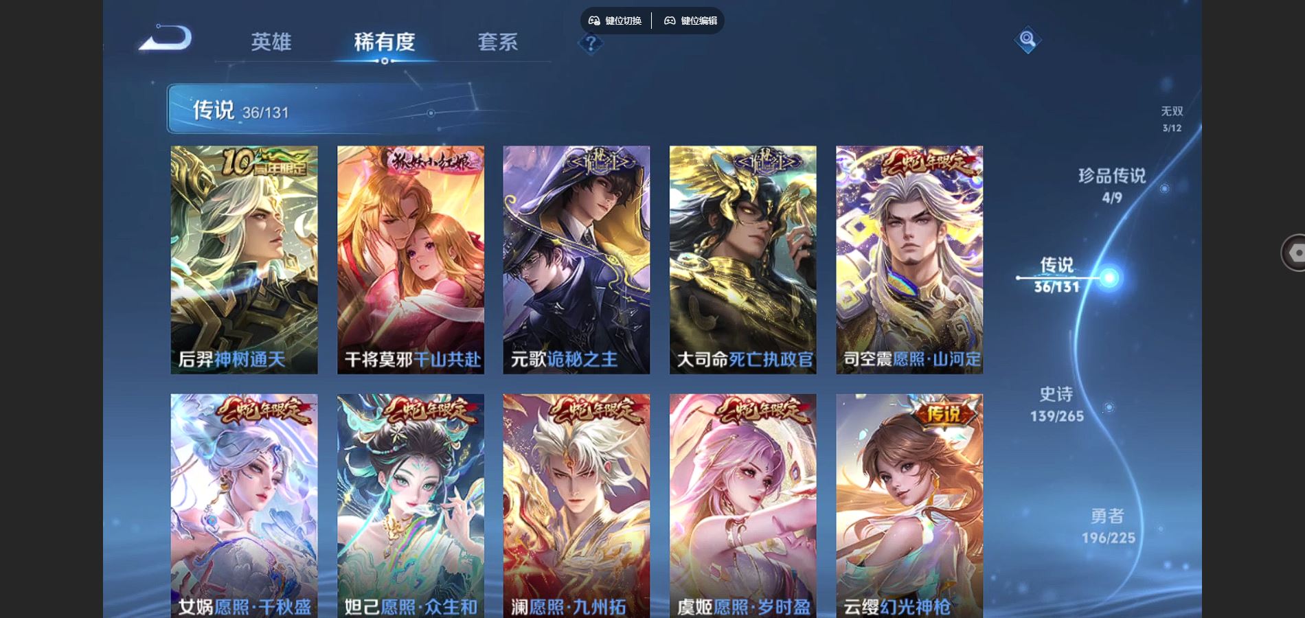 461皮肤/3典藏/3无双/4珍品传说/36传说/中路60段 对抗路53段 金标猪八戒 金标嫦娥 金