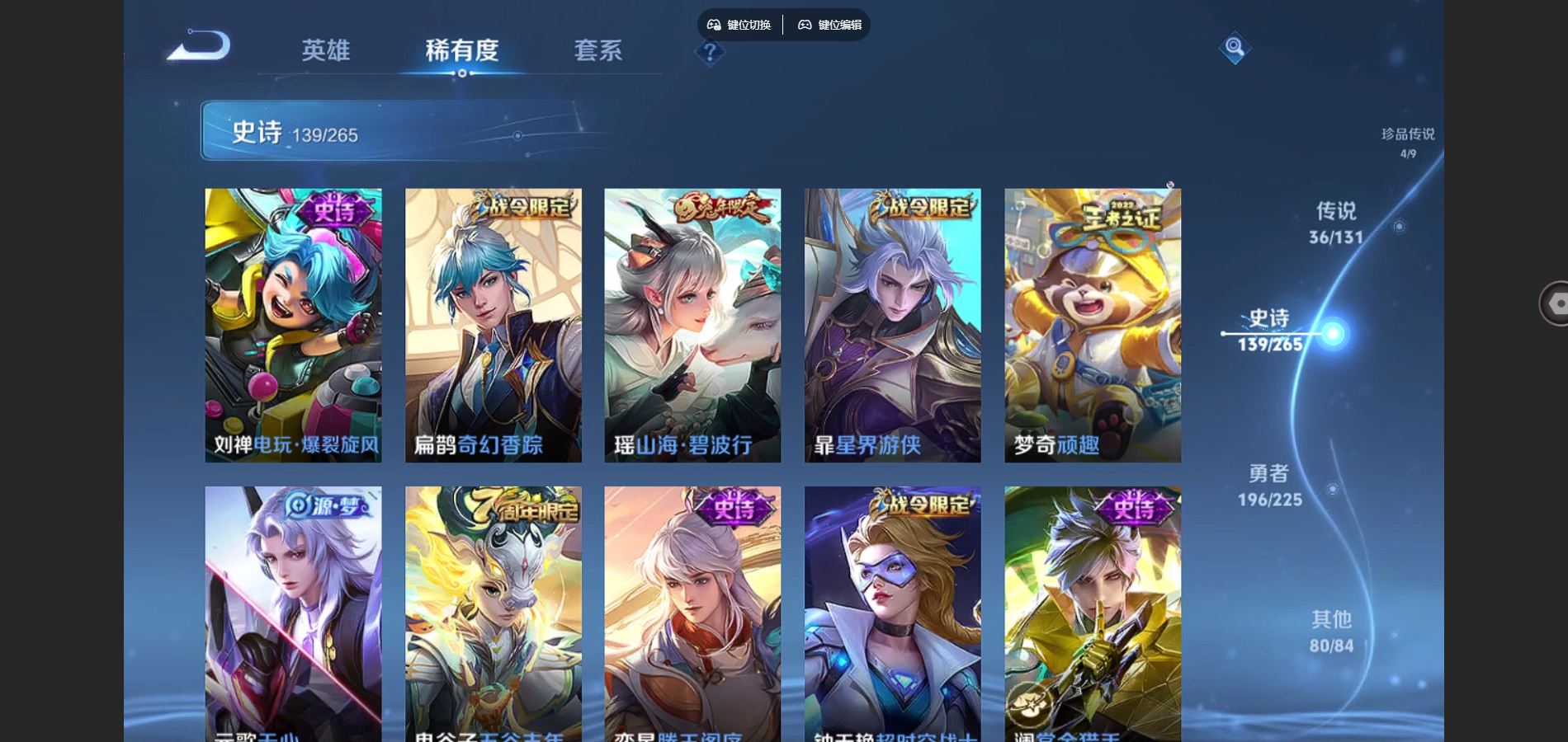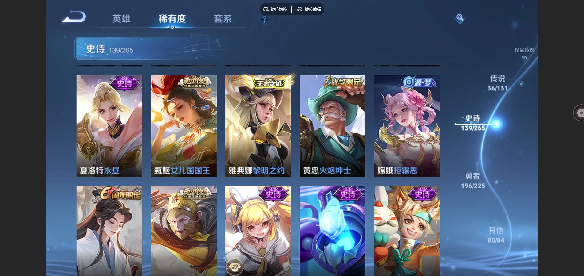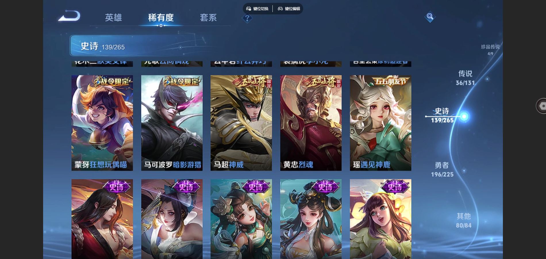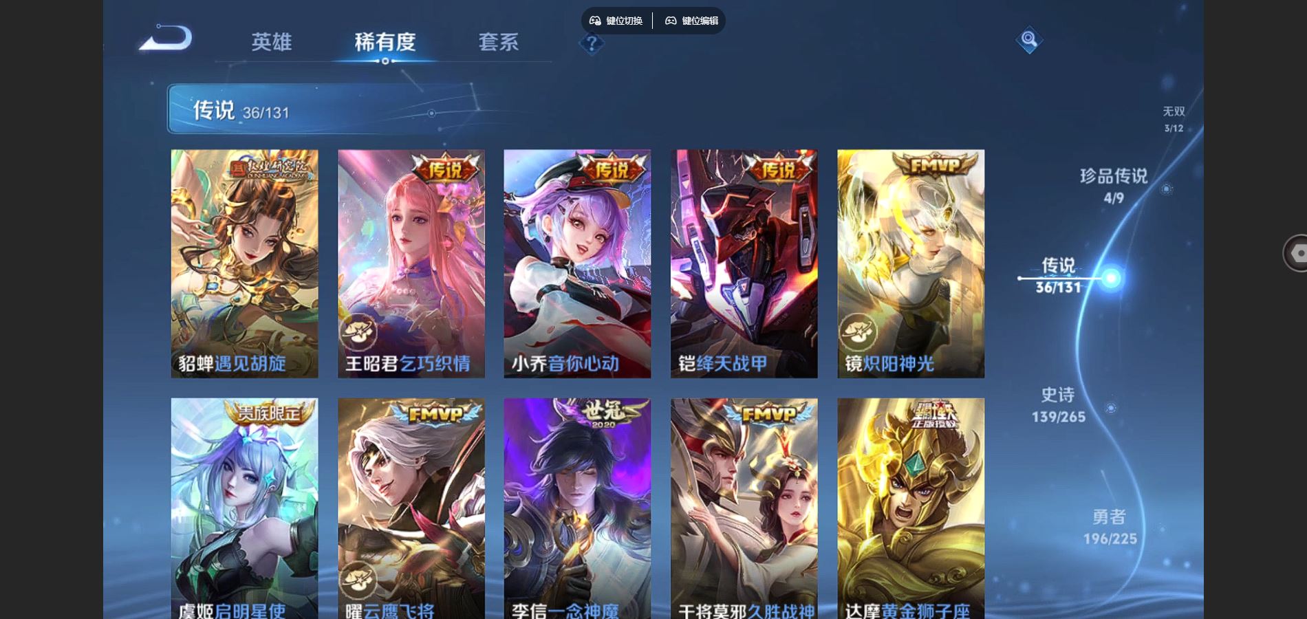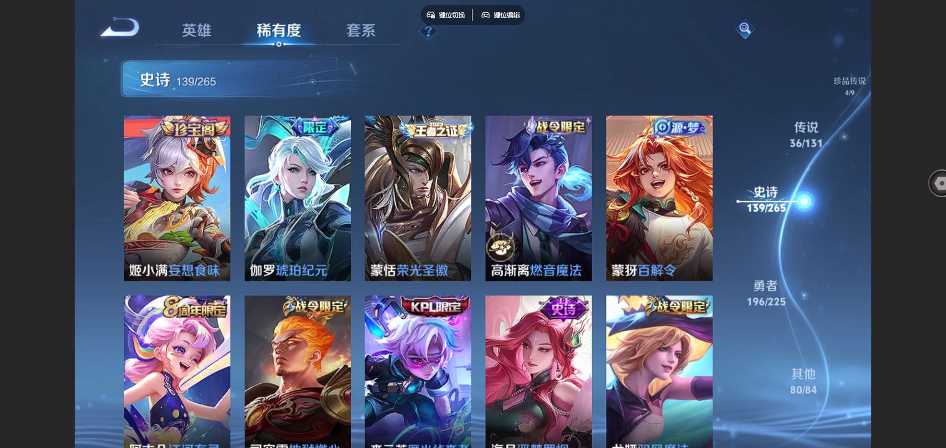 461皮肤/3典藏/3无双/4珍品传说/36传说/中路60段 对抗路53段 金标猪八戒 金标嫦娥 金
